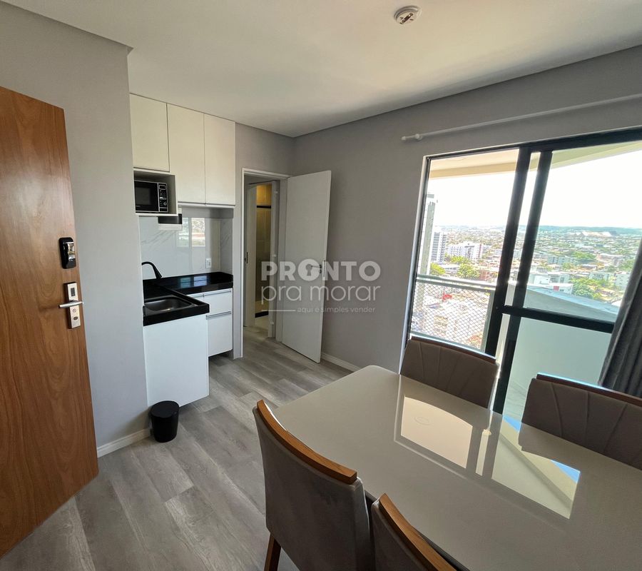 O imóvel possui 45,72m² de área construída, varanda, sala, cozinha, um quarto, banheiro social e uma vaga de garagem.