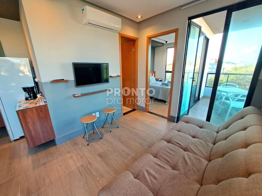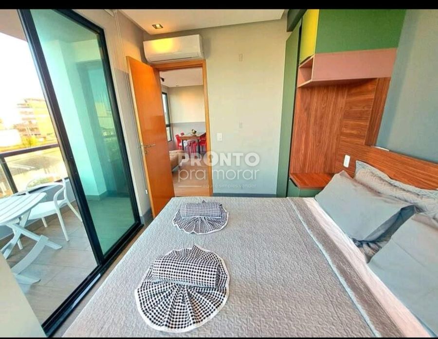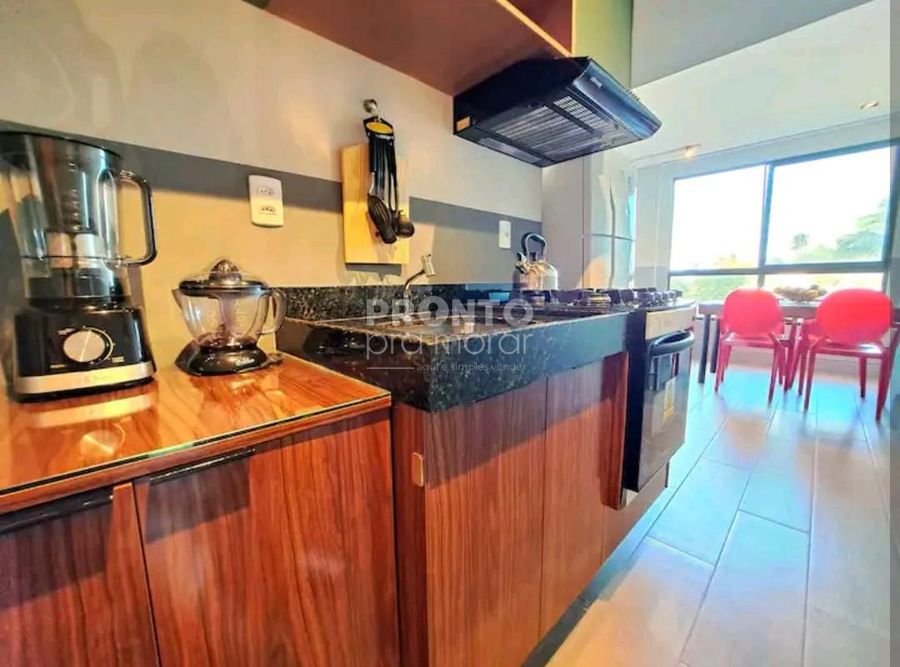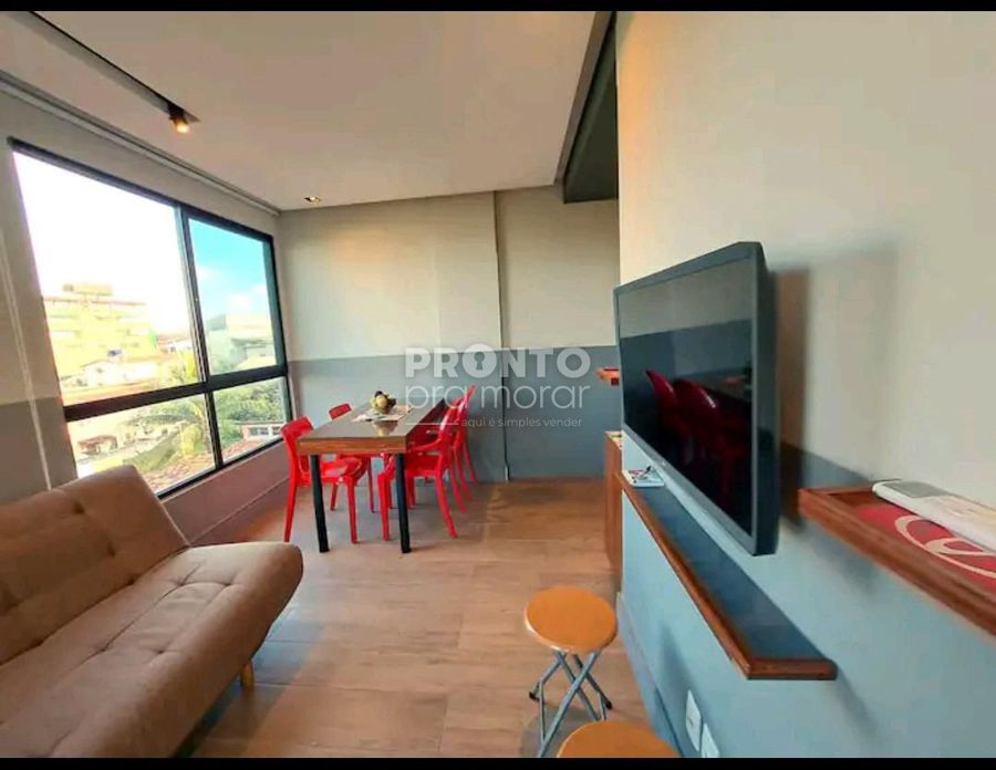 O imóvel dispõe de varanda, sala para dois ambientes, um quarto, cozinha, um banheiro social e uma vaga da garagem coberta.