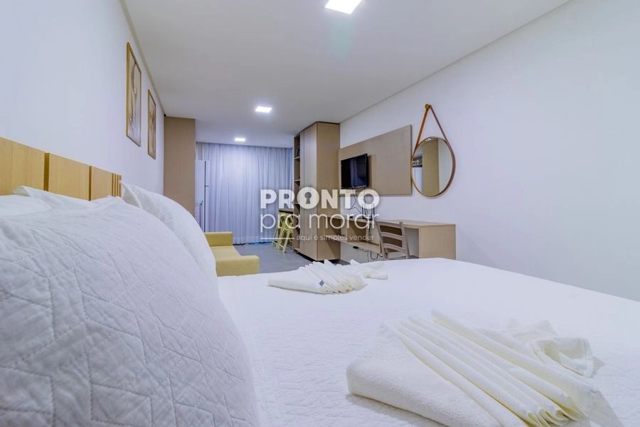 O imóvel possui varanda, piscina privativa, 1 sala , 1 quarto sendo, 1 wc social, 1 vaga de garagem e totalmente mobiliado.