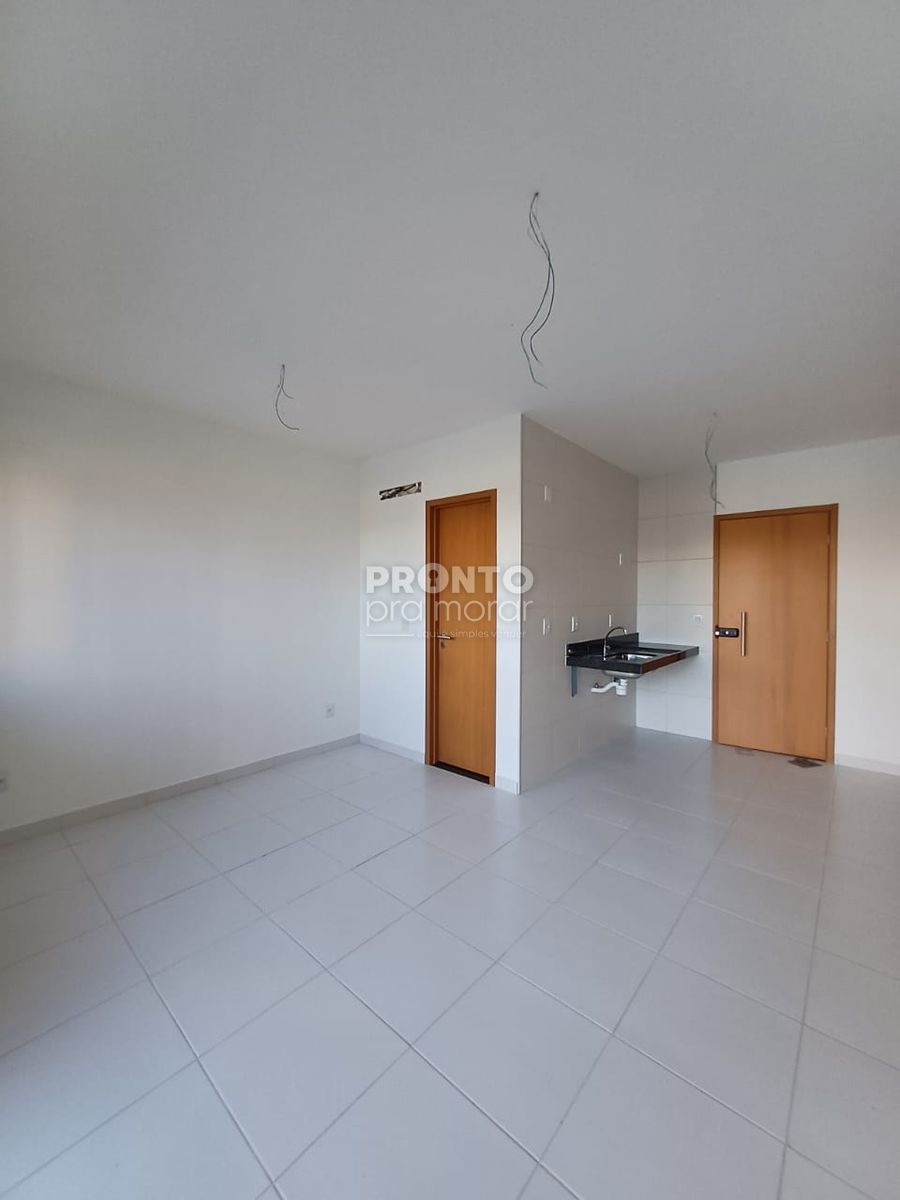 O imóvel frente piscina possui varada, sala, quarto, banheiro, cozinha e uma vaga de garagem.