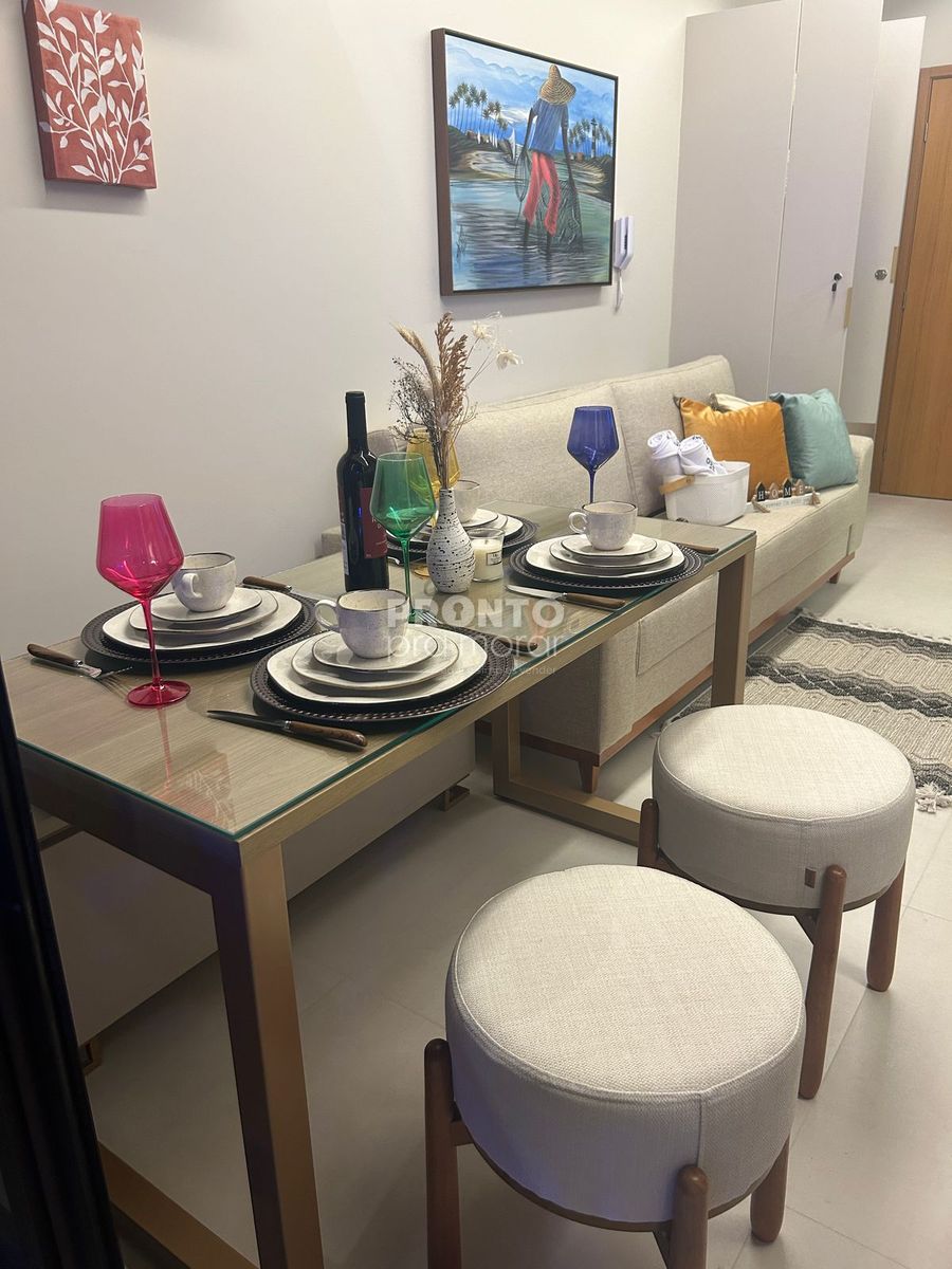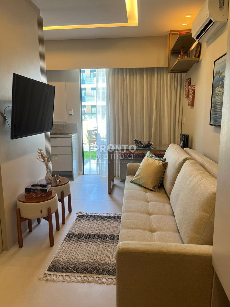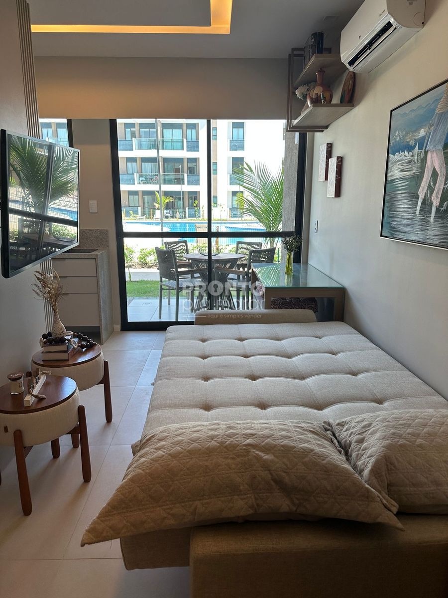 Excelente flat mobiliado localizado em Muro Alto, com 28,55m² de área útil.