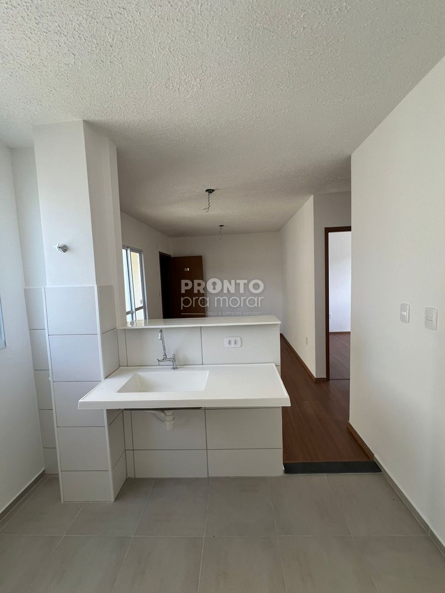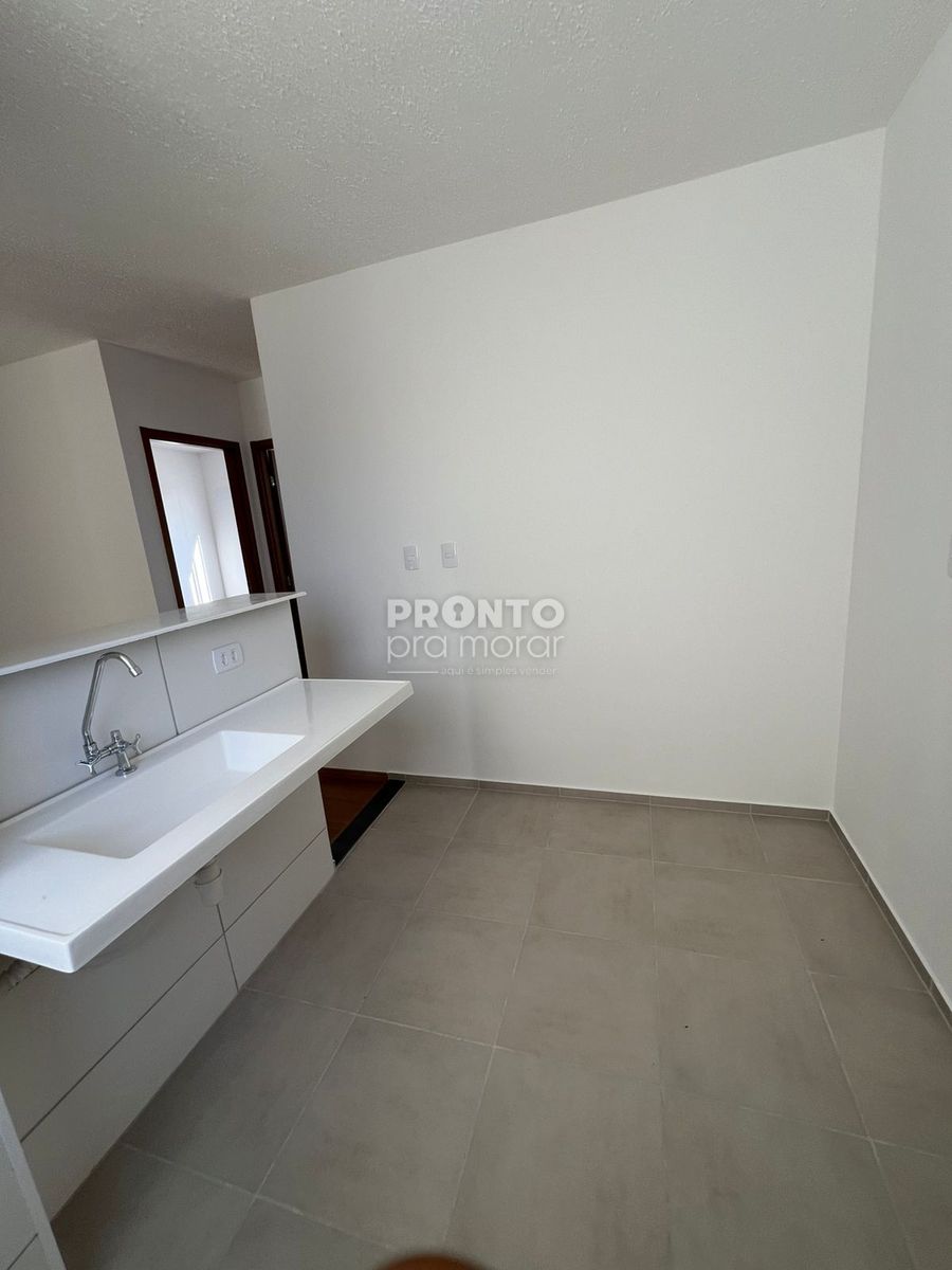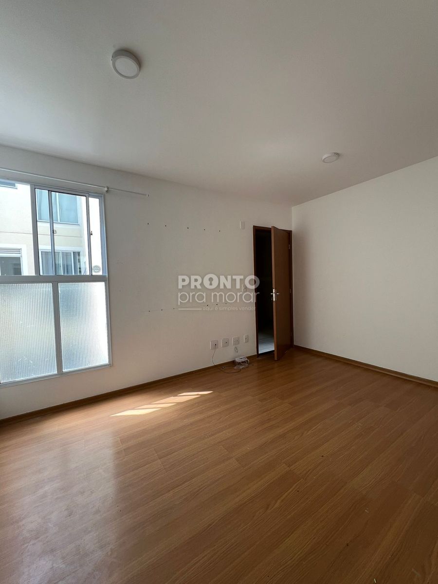 O imóvel possui sala para dois ambientes, dois quartos, banheiro social, cozinha e uma vaga de garagem.