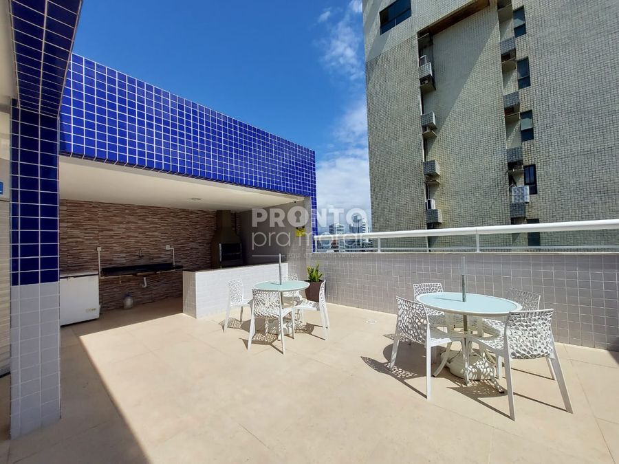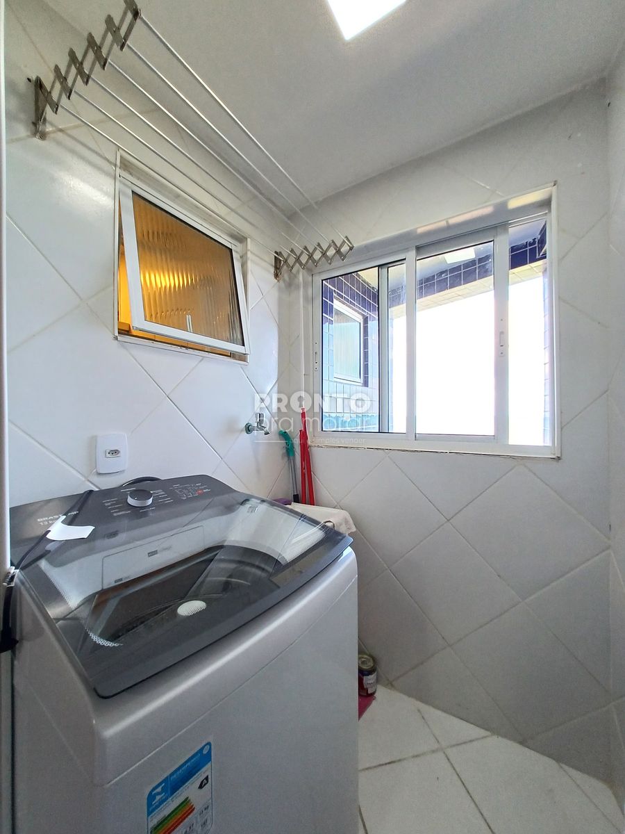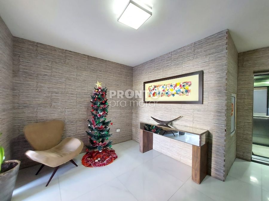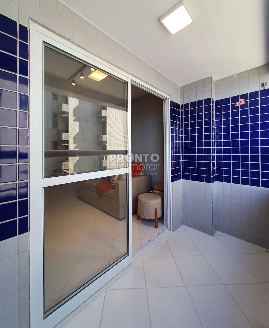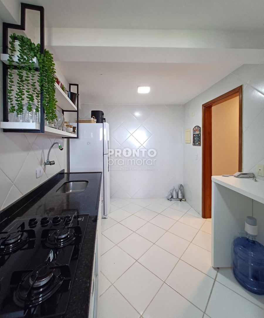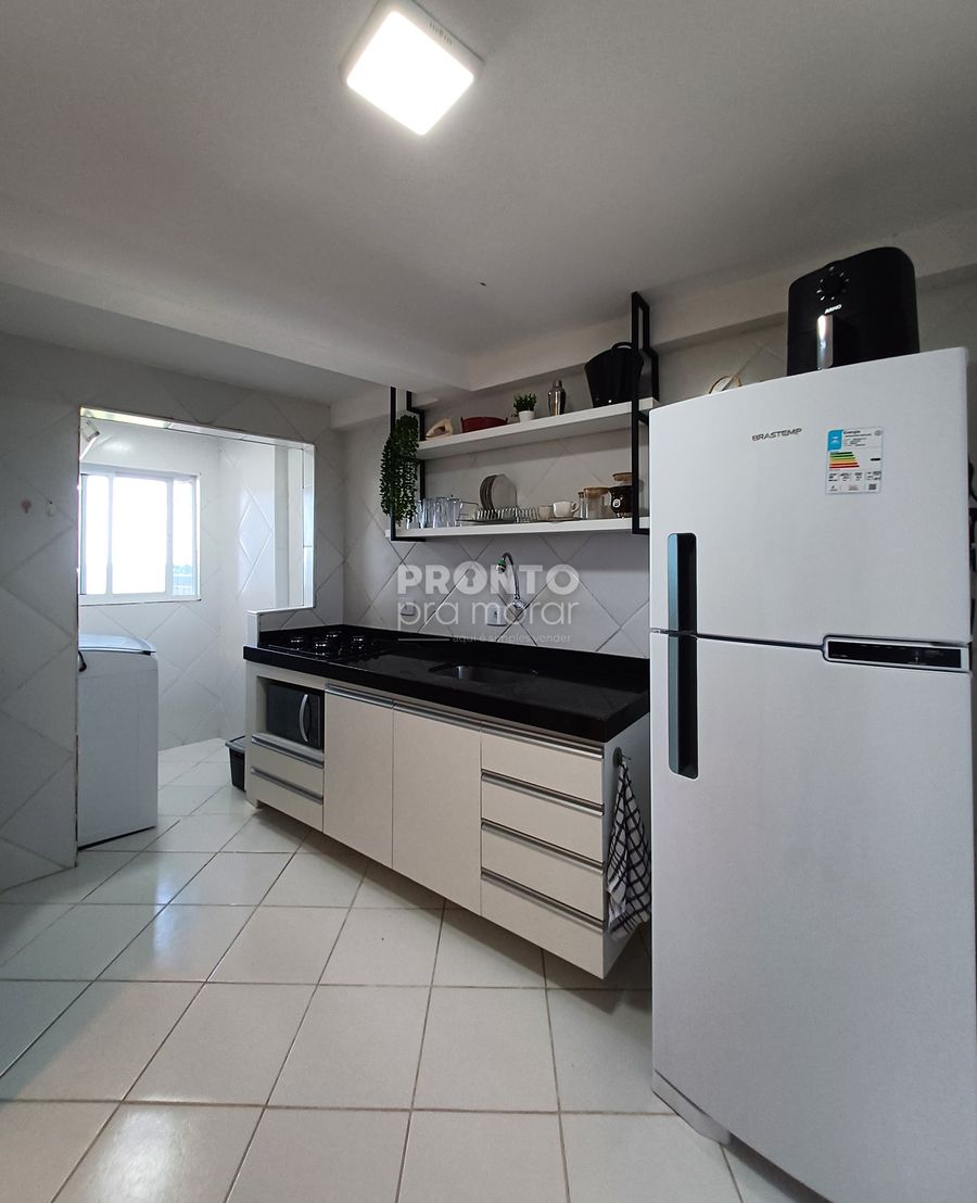 O imóvel possui 71,45m², varanda, sala para dois ambientes, banheiro social, dois quartos sendo um suíte, cozinha, área de serviço e uma vaga de garagem.