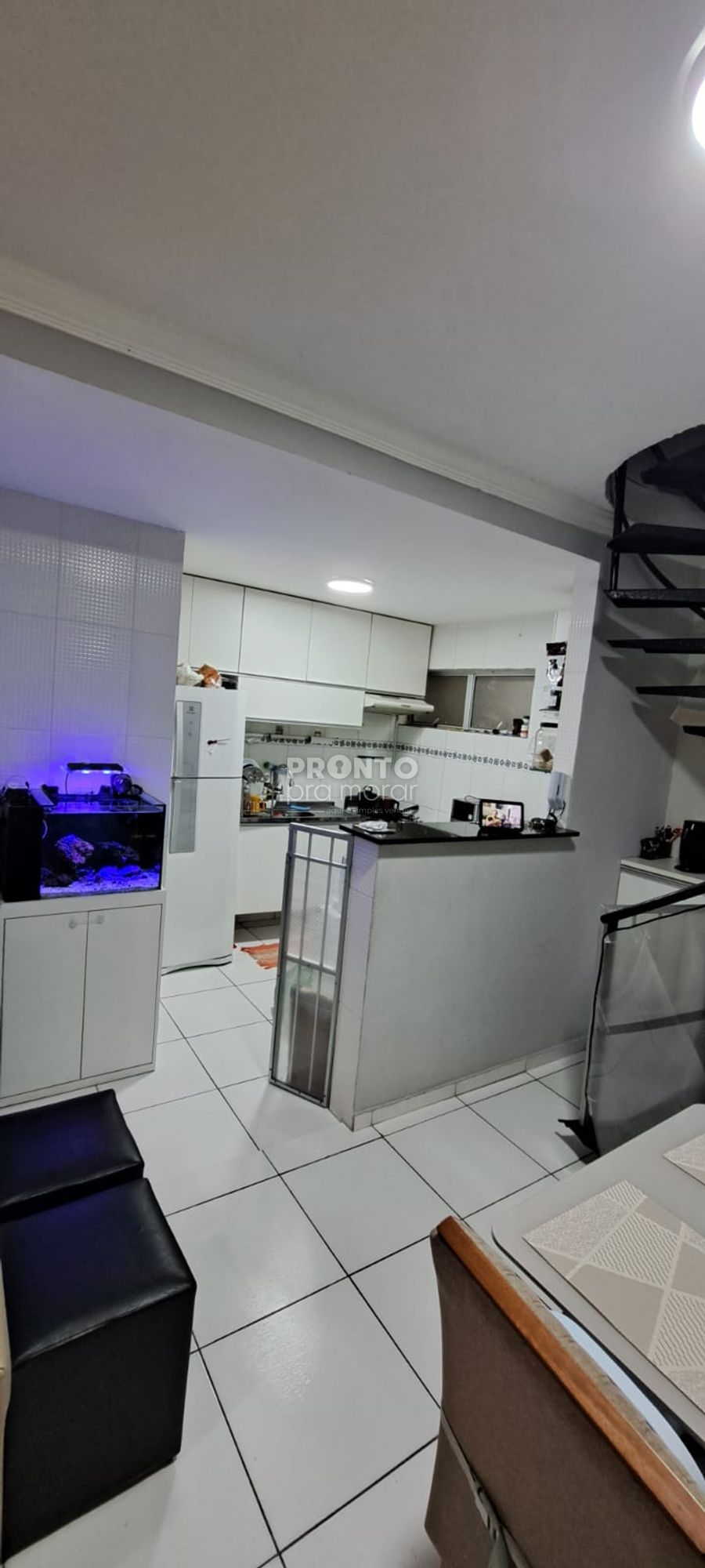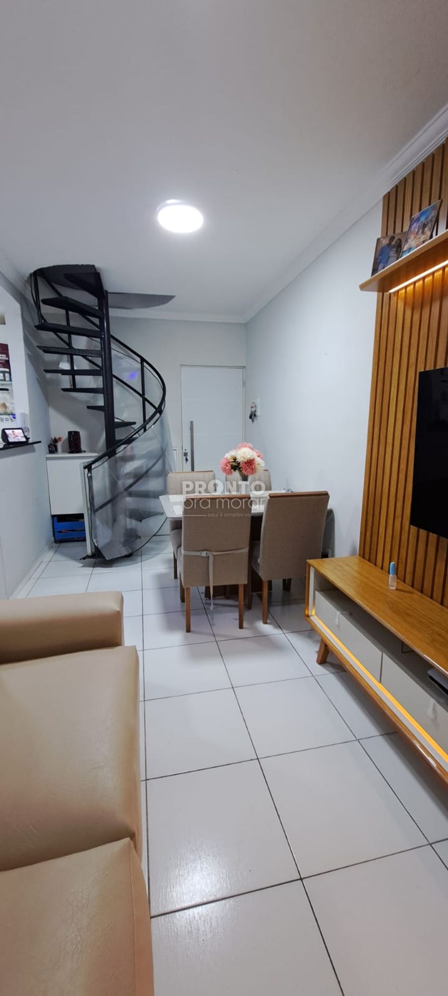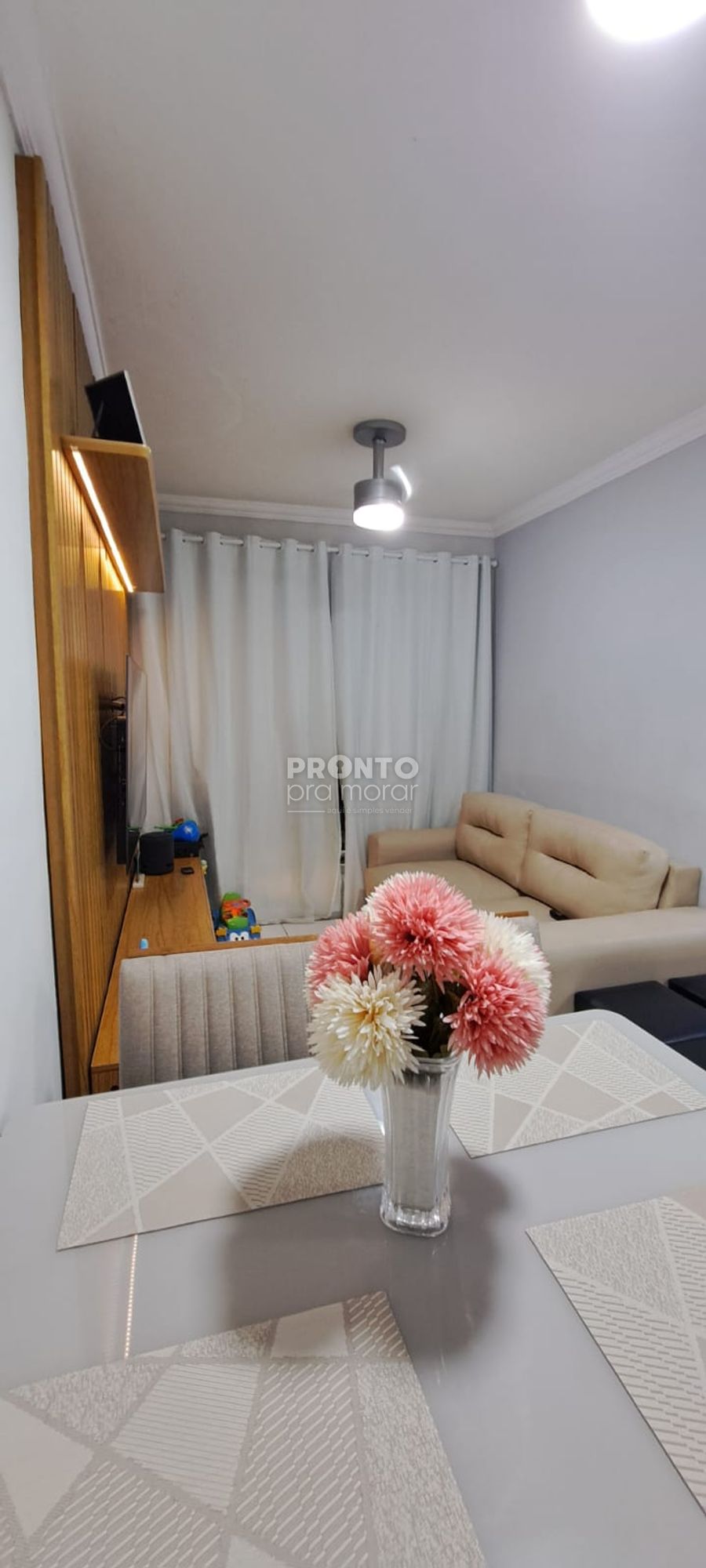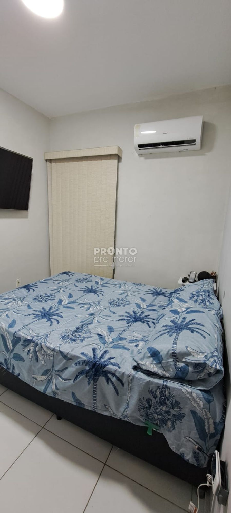 O imóvel possui varanda, sala para dois ambientes, dois quartos, banheiro social, cozinha, área de serviço e uma vaga de garagem.