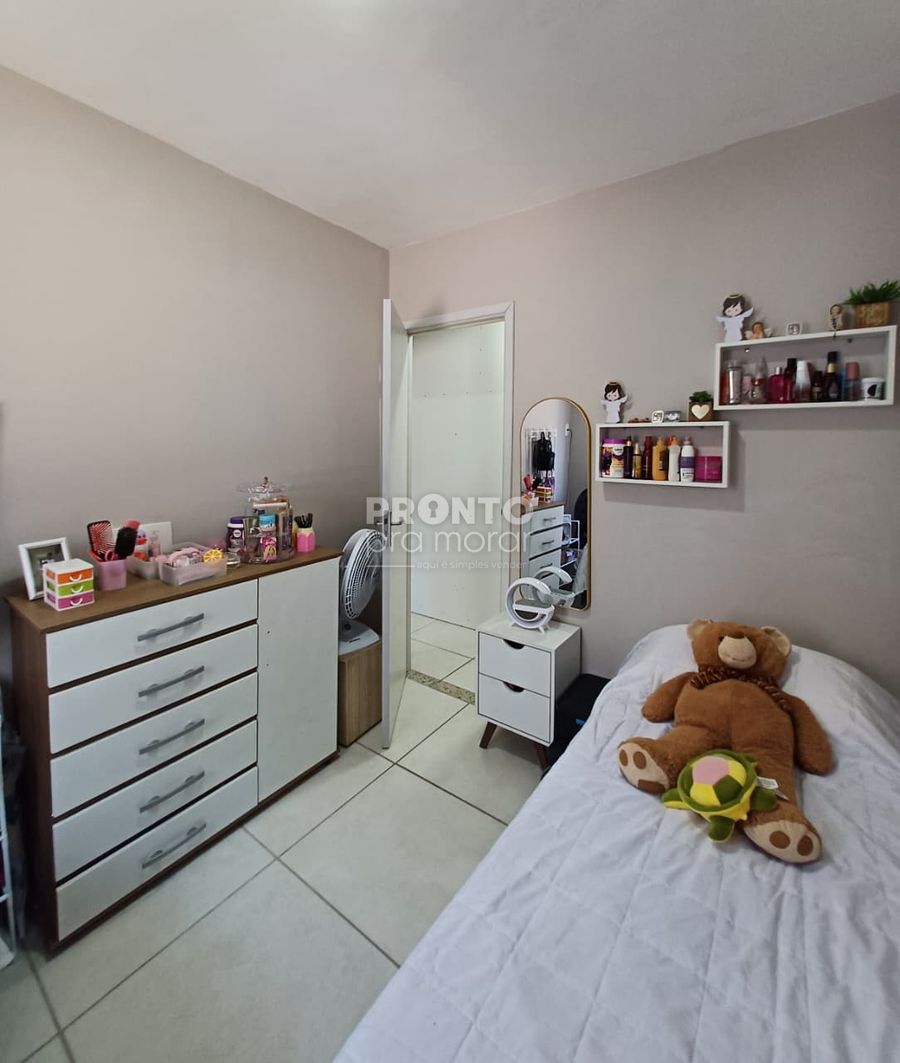O condomínio dispõe de piscina adulto e infantil, playground, academia, salão de festas, sala de jogos, campinho gramado.