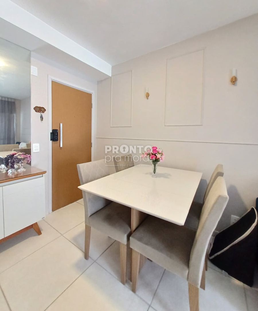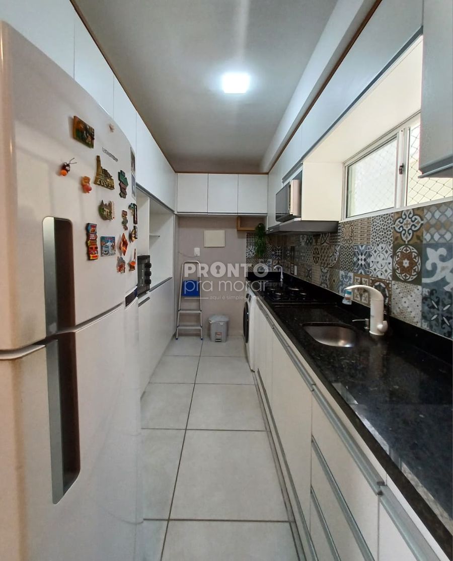 O imóvel possui 47m², varanda, sala para dois ambientes, banheiro social, dois quartos cozinha com armários planejados, área de serviço e uma vaga de garagem.