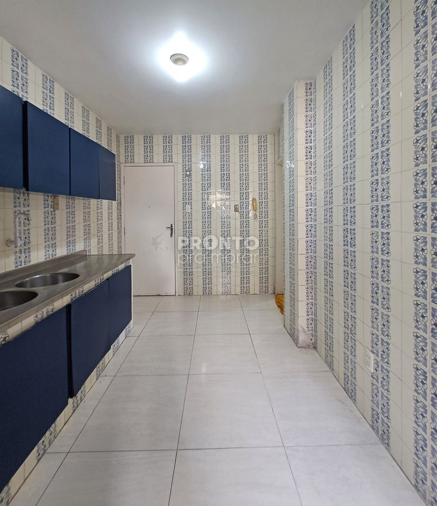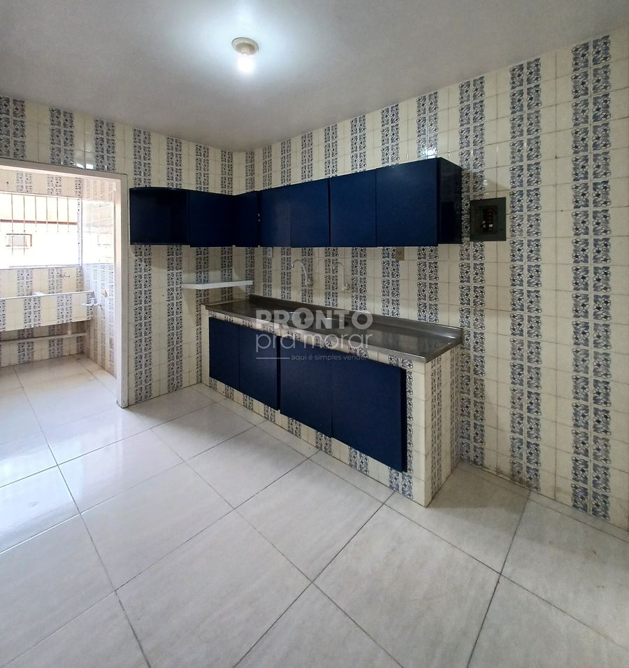 O imóvel possui varanda, sala para dois ambientes, dois quartos sendo um suíte, banheiro social, cozinha, área, banheiro e quarto de serviço e uma vaga de garagem coberta.