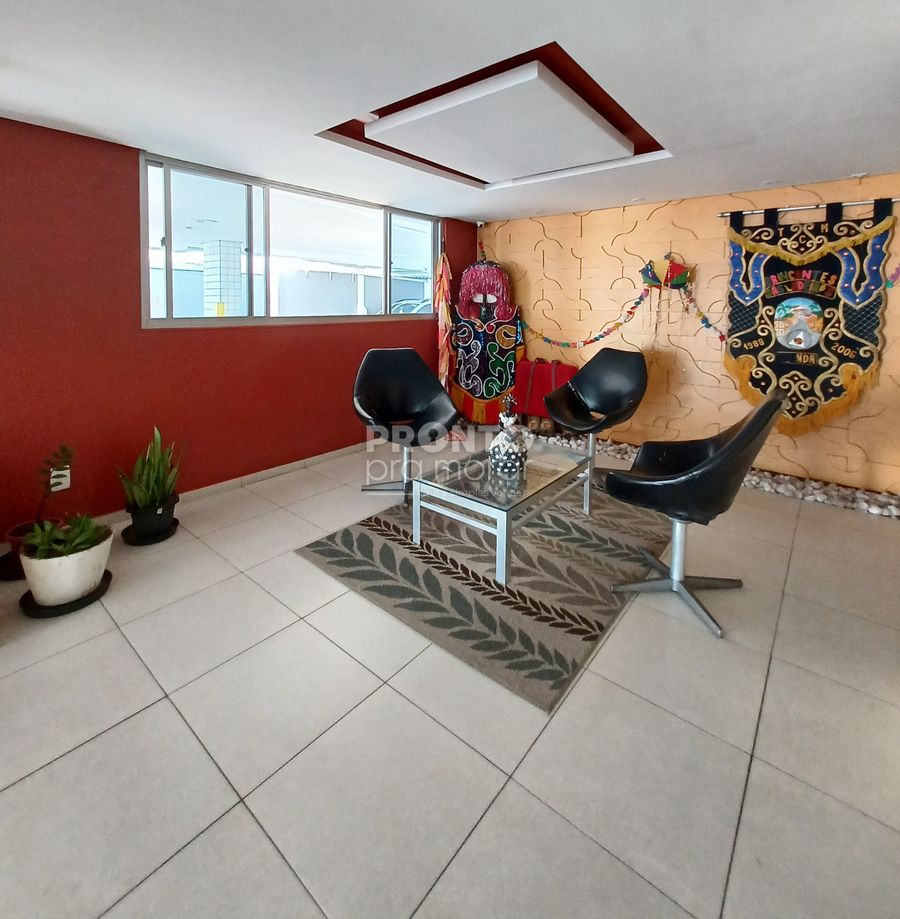 Edifício com área de convivência e portaria 24h.