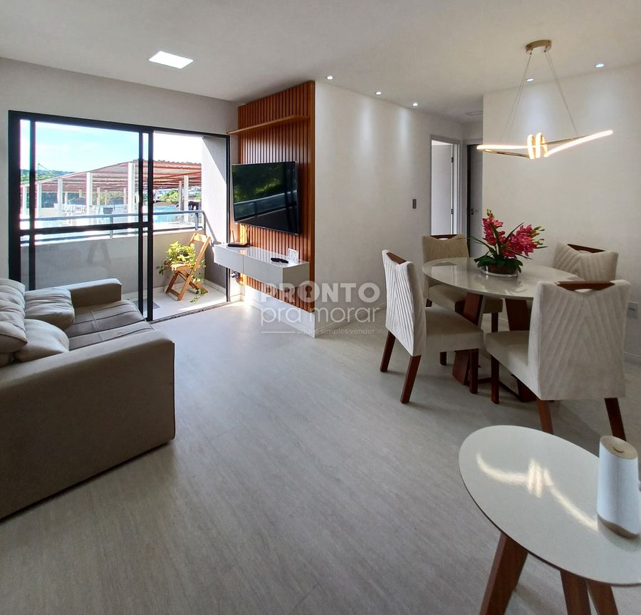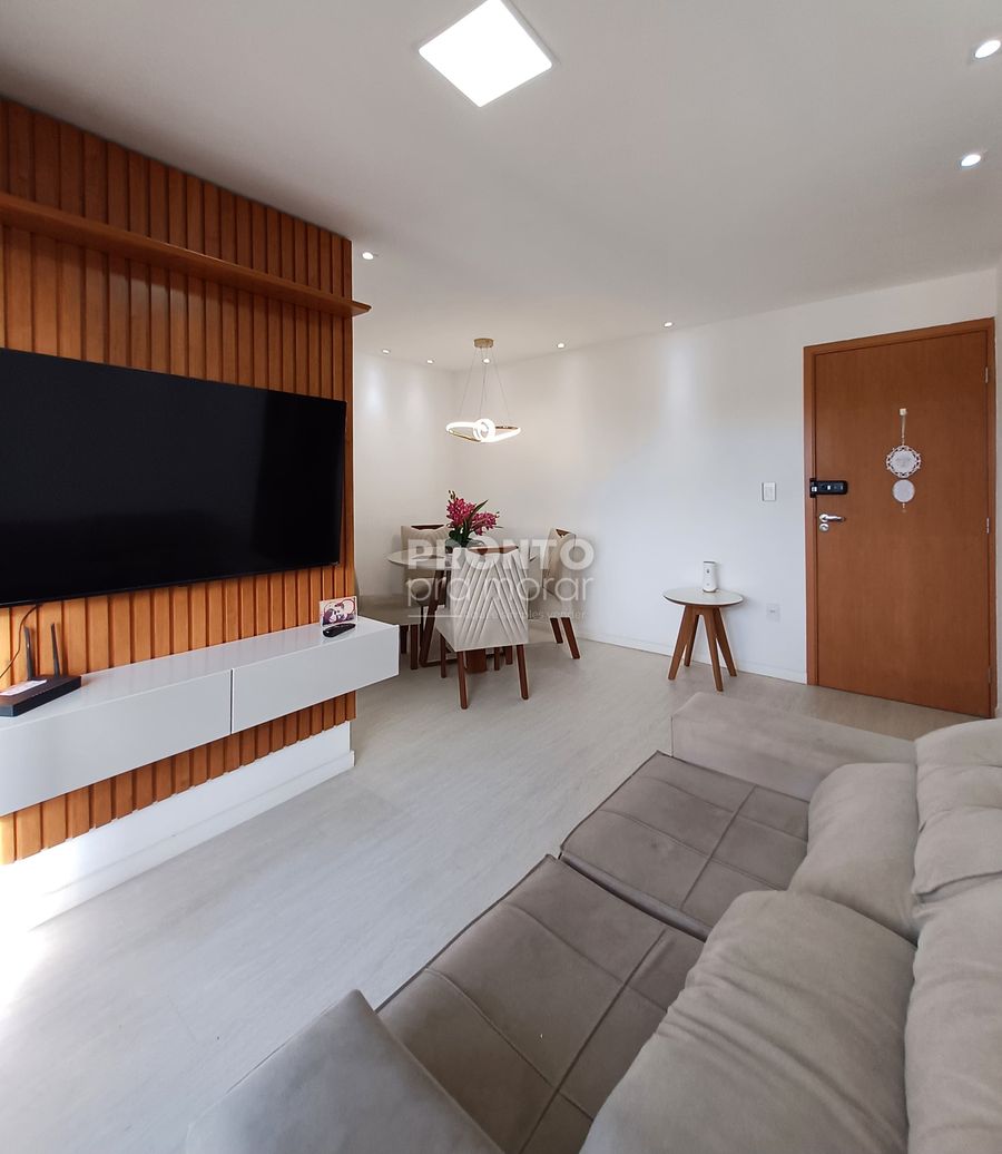 O imóvel possui varanda, sala para dois ambientes, 2 quartos sendo 1 com closet, 1 wc social, cozinha, área de serviço e 1 vaga de garagem.