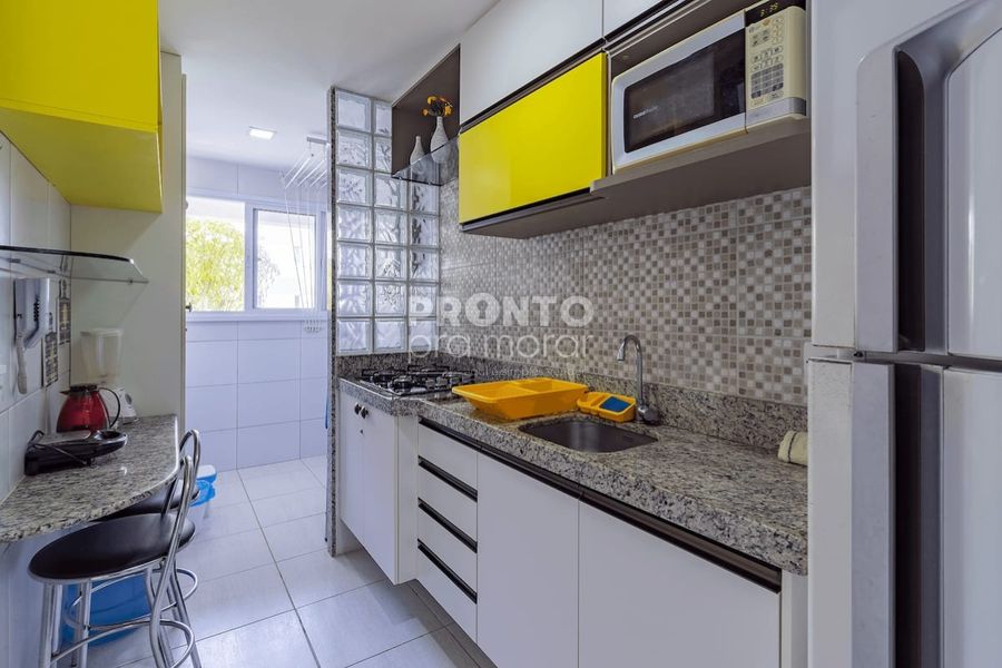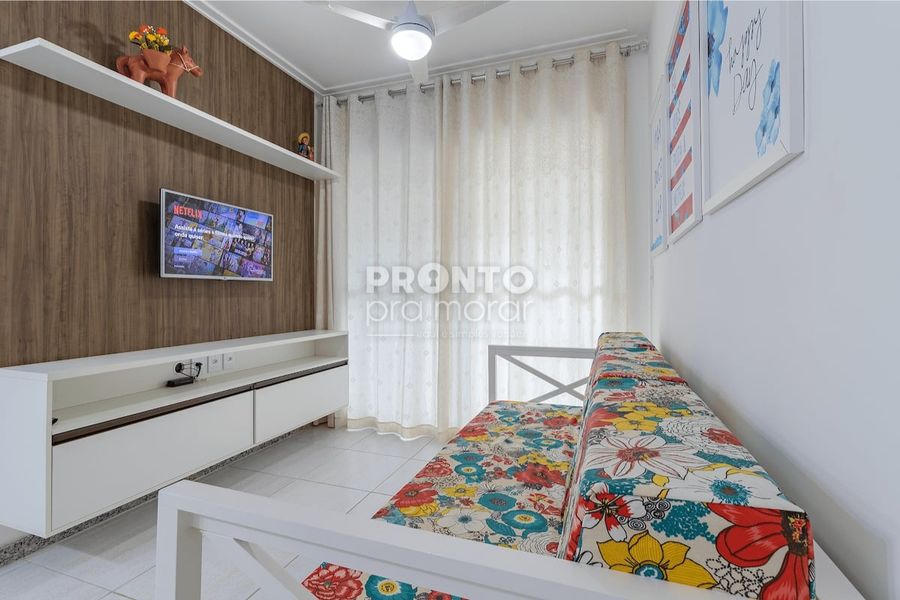 O imovel possui varanda, sala para dois ambientes, dois quartos sendo um suíte, wc social, cozinha, área de serviço e uma vaga de garagem.