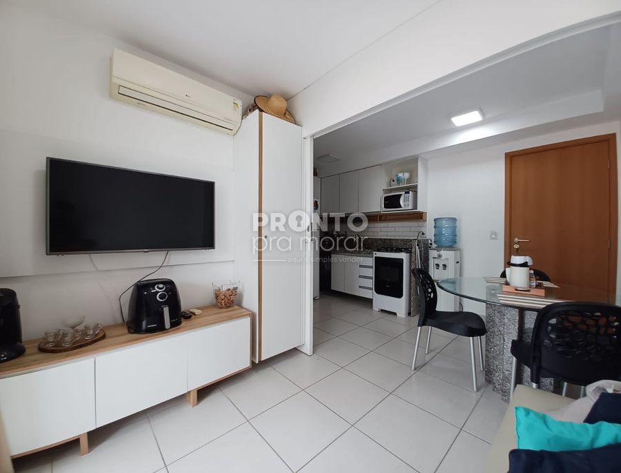 O imóvel possui varanda gourmet, sala para dois ambientes, dois quartos sendo um suíte, wc social, cozinha e uma vaga de garagem.