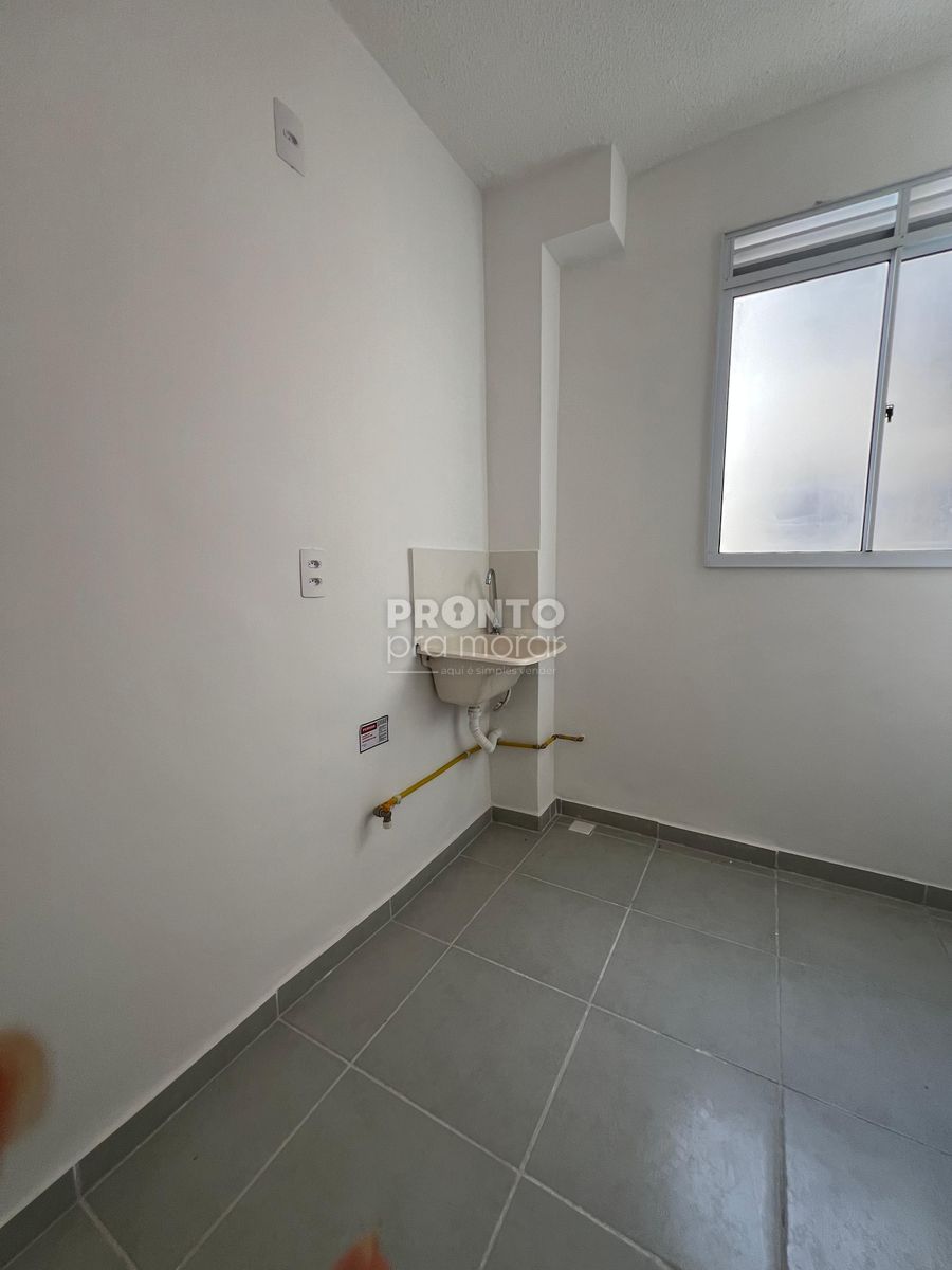 O imóvel possui sala para dois ambientes, dois quartos, cozinha/área de serviço e uma vaga de garagem.