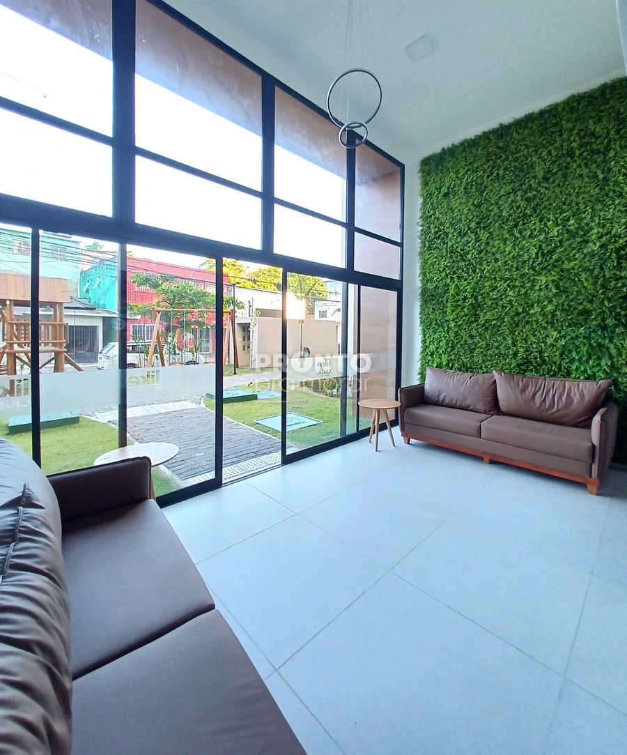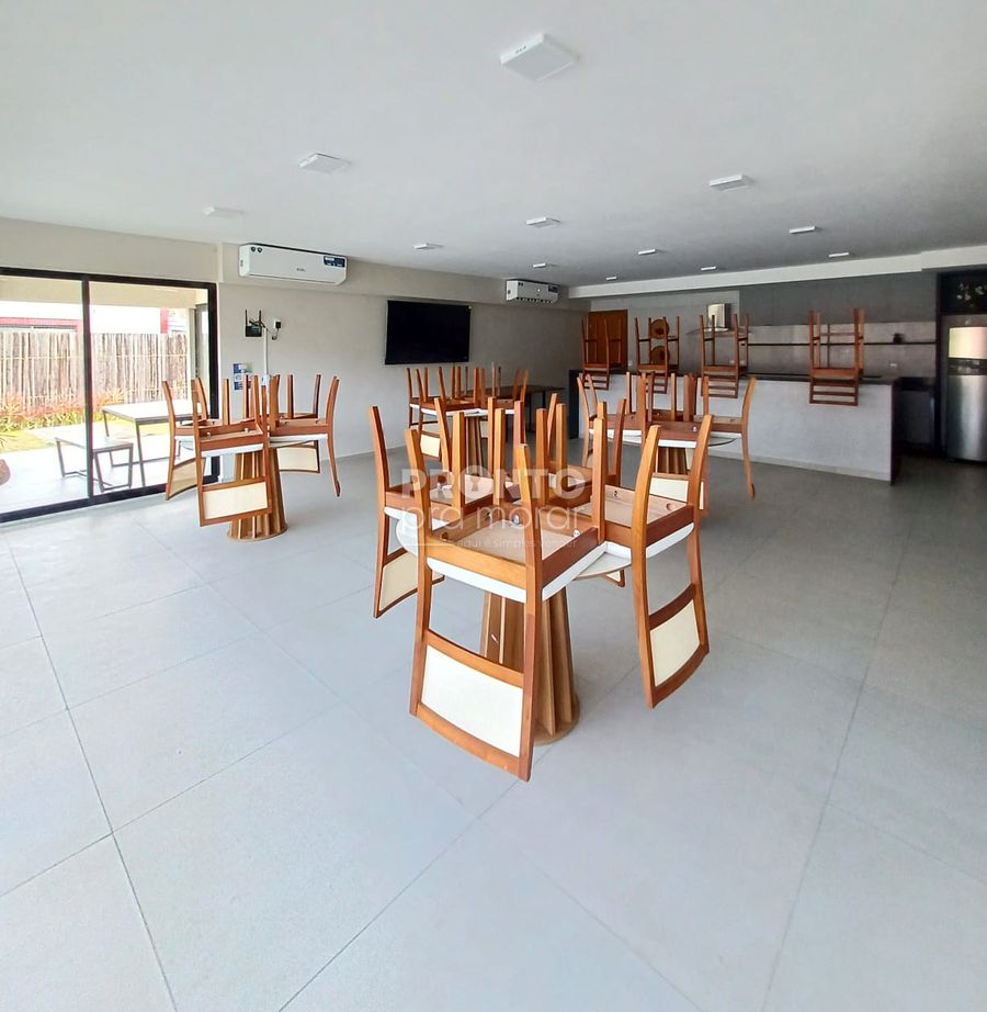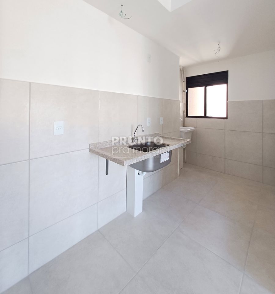 O imóvel possui 42,94m², varanda, sala para dois ambientes, dois quartos , wc social, cozinha, área de serviço e uma vaga de garagem.