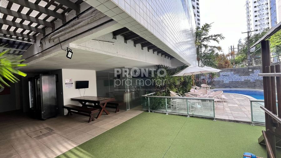 O condomínio dispõe churrasqueira, espaço gourmet, piscina adulto, salão de festa, espaço kids, portaria 24 horas, câmeras de segurança.