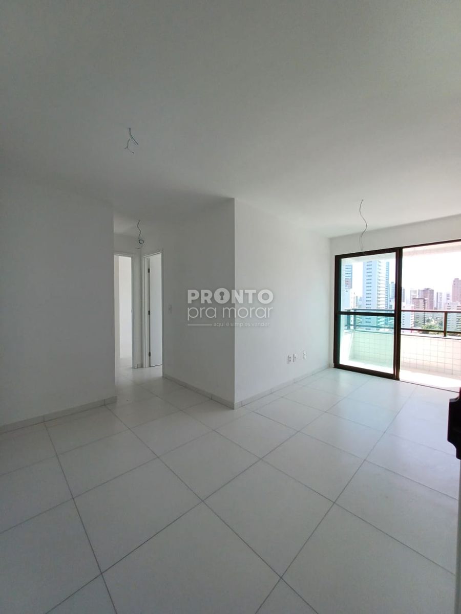 O imóvel possui varanda, sala para dois ambientes, dois quartos sendo um suíte, banheiro social, cozinha, área de serviço e uma vaga de garagem