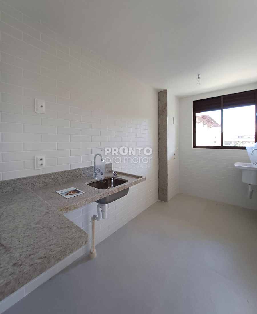 O imóvel possui 56,29m² de área privativa, varanda, sala para dois ambientes, dois quartos sendo um suíte, banheiro social, cozinha, área de serviço e duas vagas de garagem.