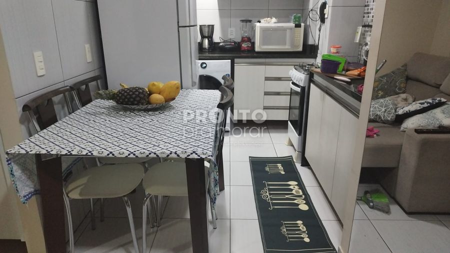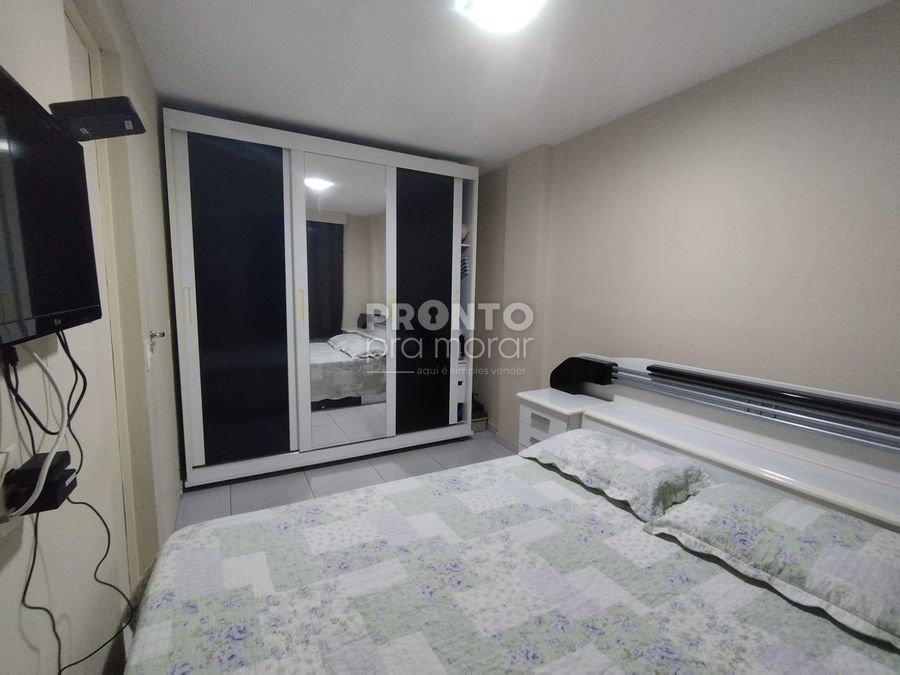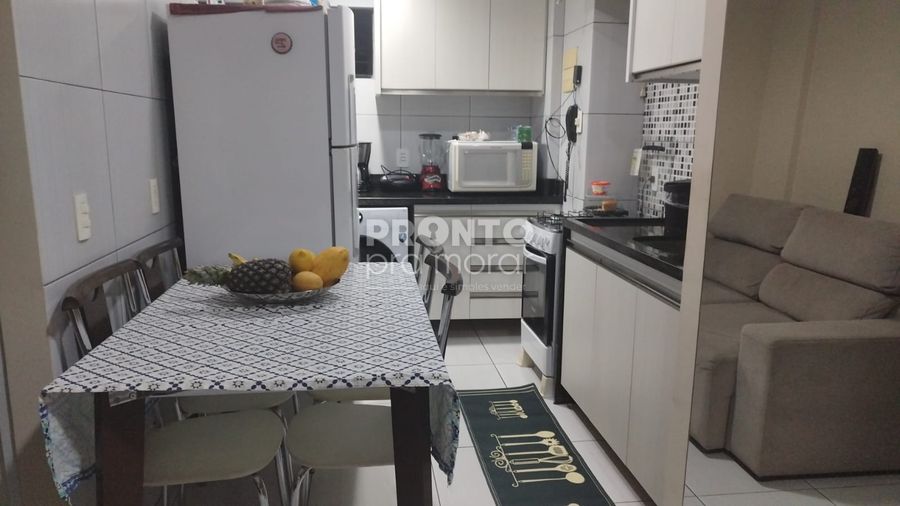 O imóvel possui 41m² de área útil, sala para dois ambientes, dois quartos, um banheiro social, cozinha e uma vaga de garagem.