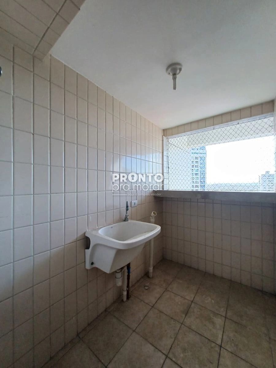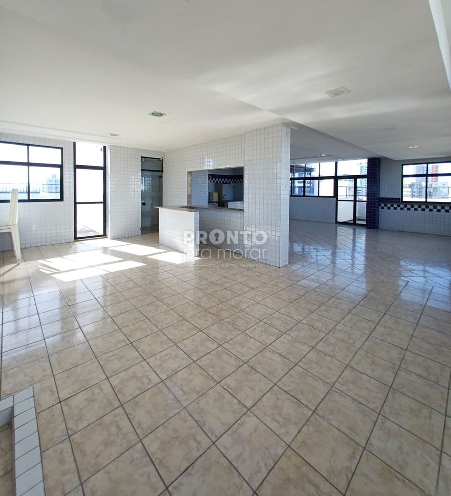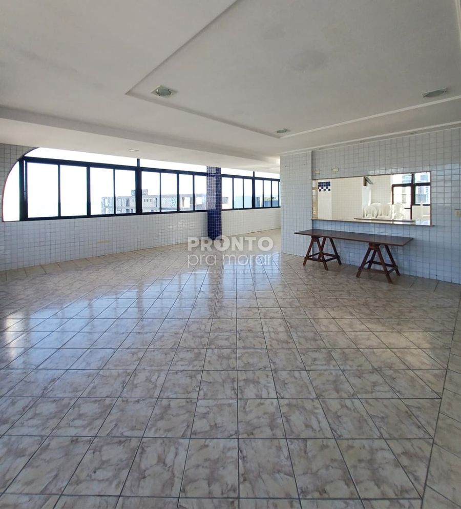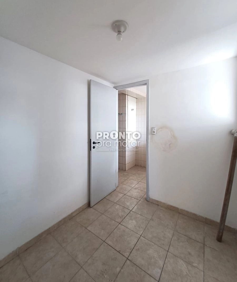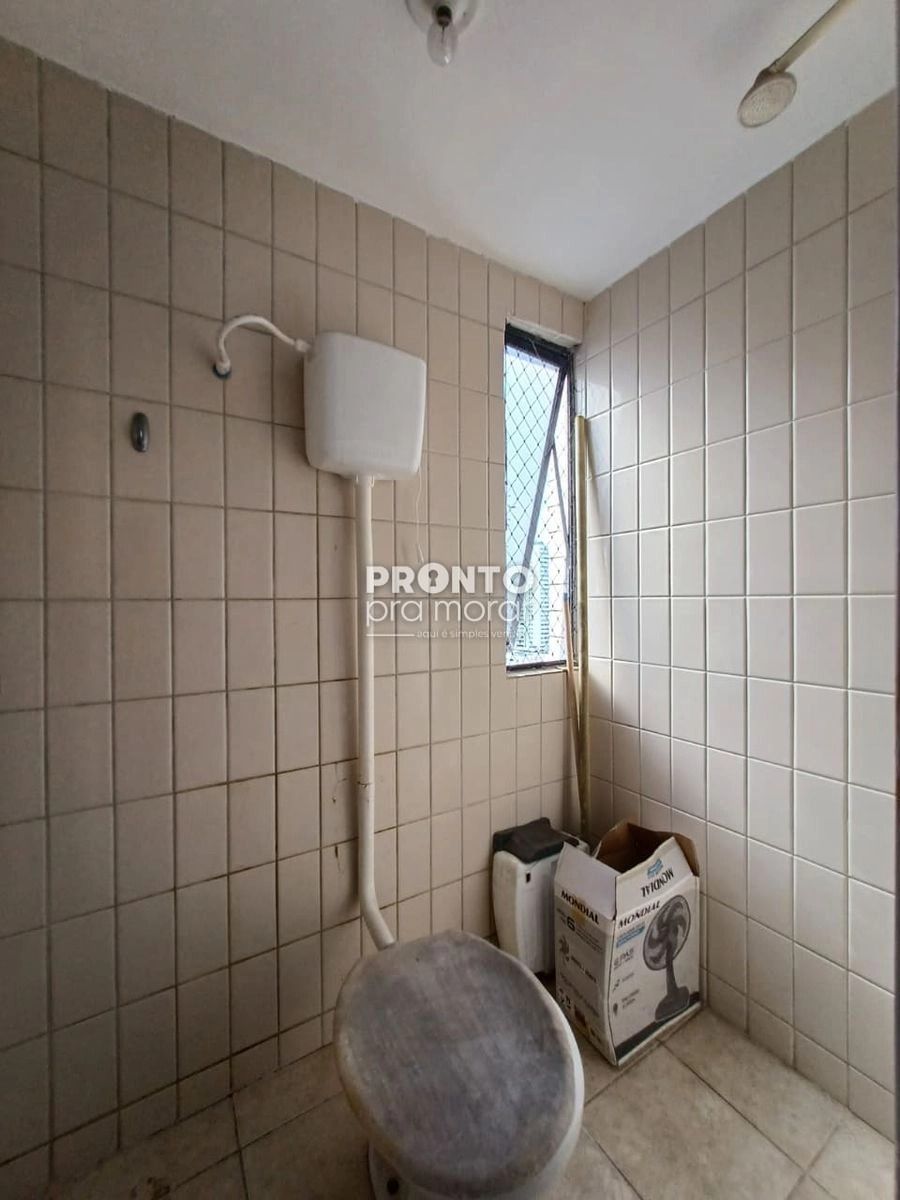 O apartamento possui: sala para dois ambientes, dois quartos sendo um suíte, cozinha ampla, um banheiro social, área de serviço, banheiro de serviço, dormitório de serviço e uma vaga de garagem.