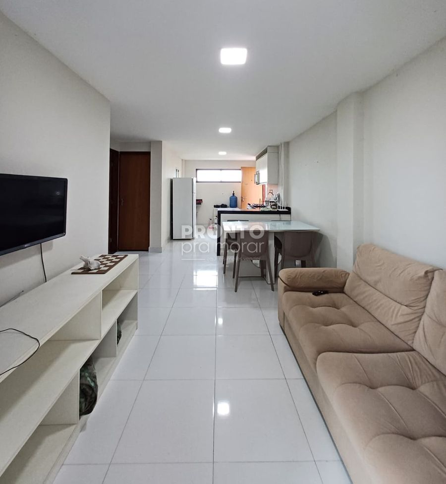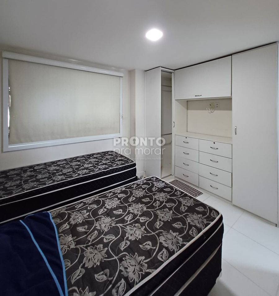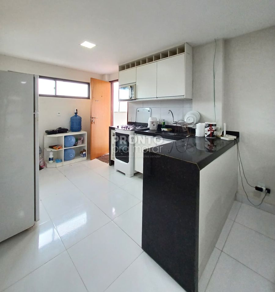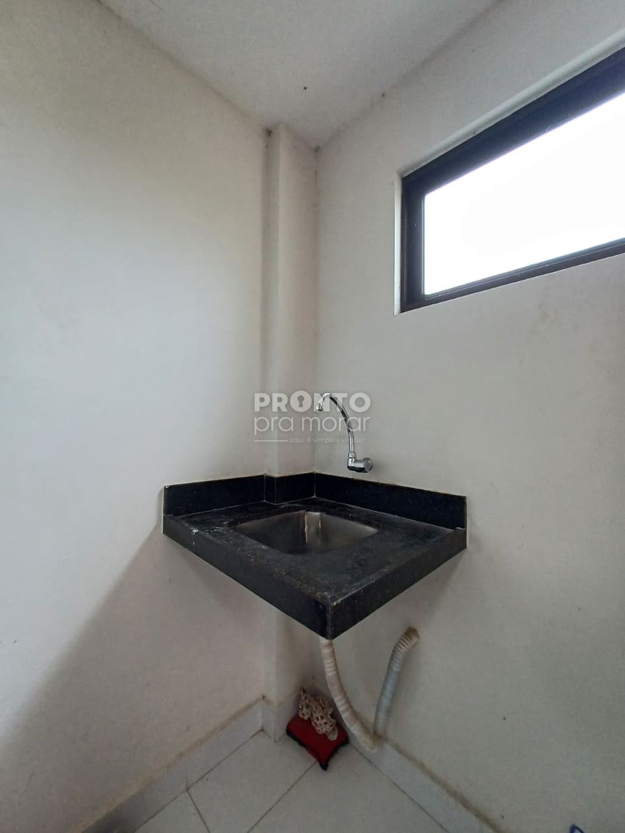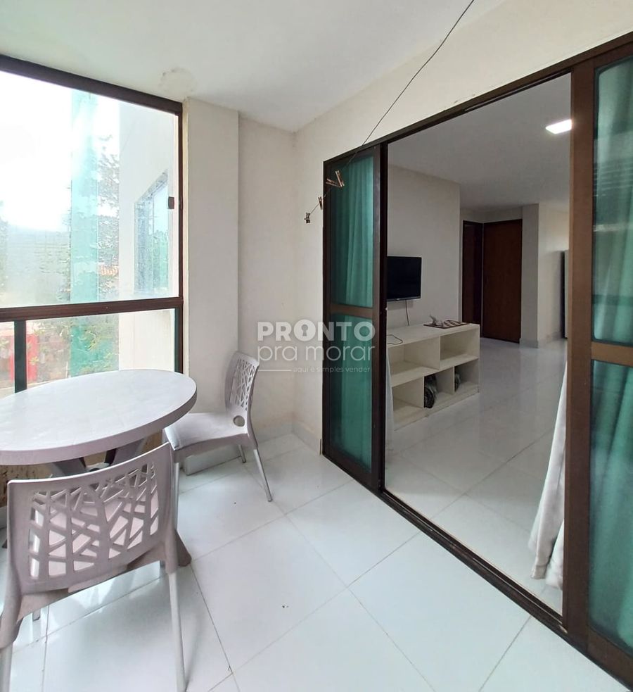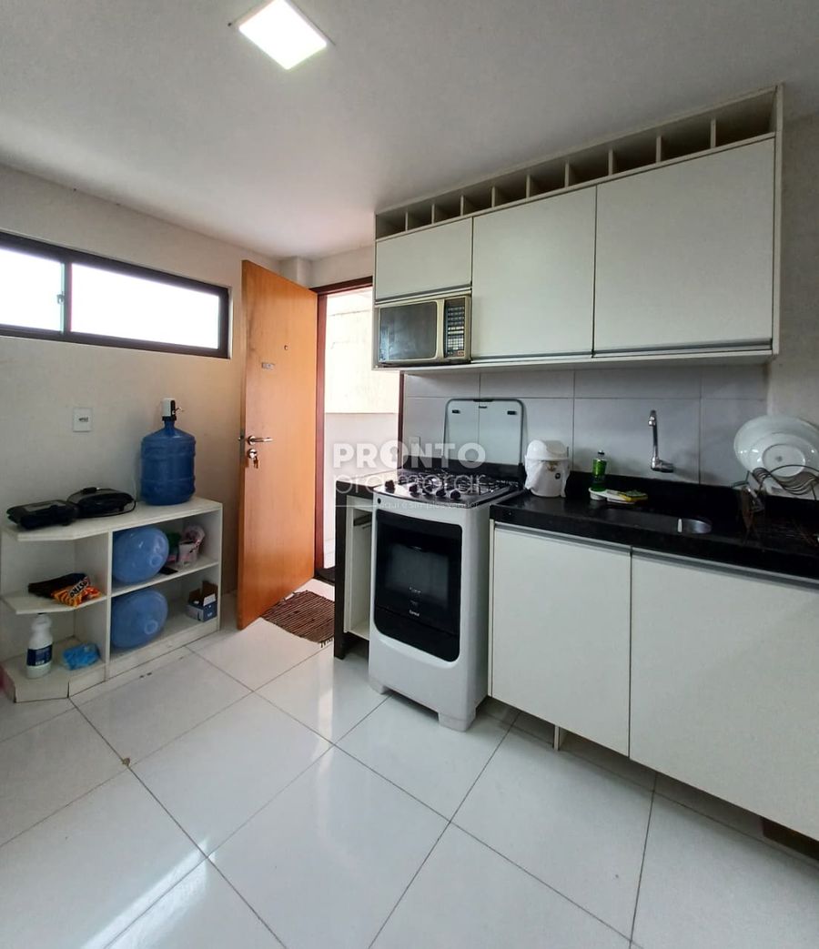 O apartamento possui 55m², varanda, dois quartos sendo um suíte, sala para dois ambientes, cozinha, um banheiro social, área de serviço e garagem rotativa