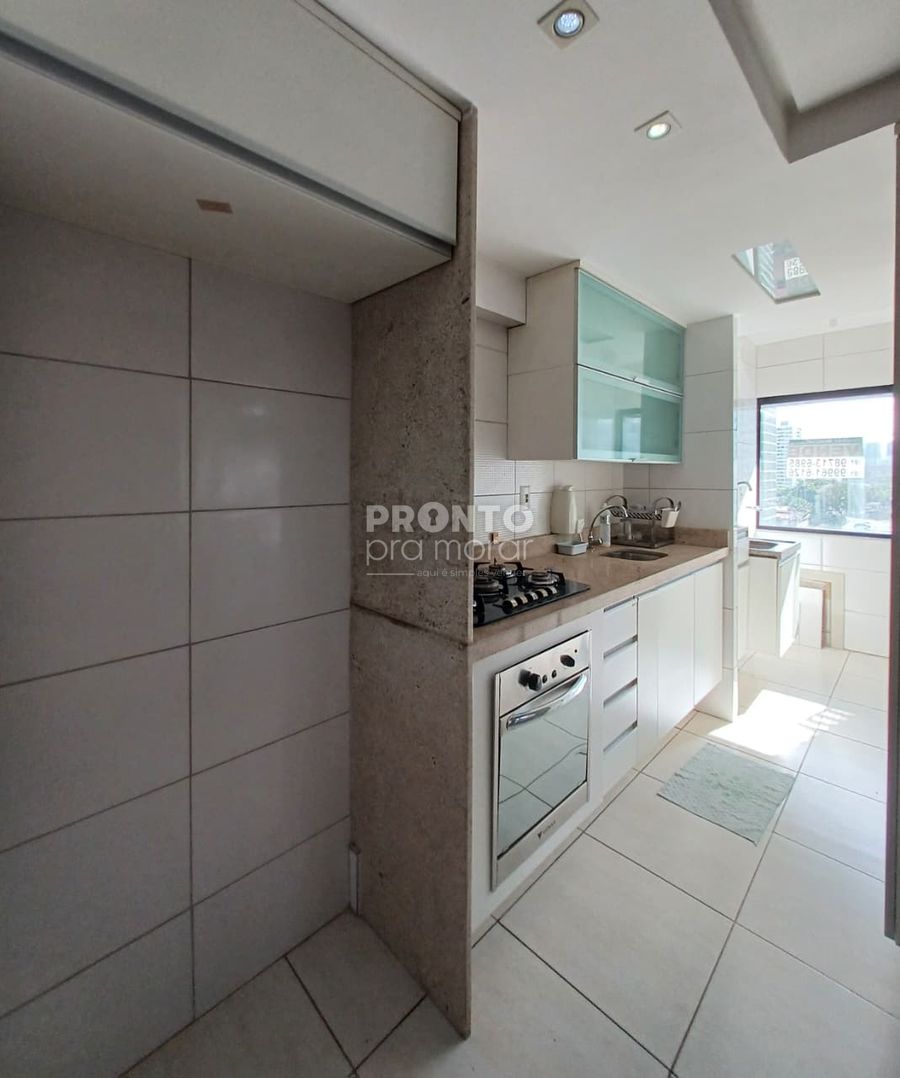 O apartamento possui sala para dois ambientes com varanda integrada, dois quartos sendo um suíte com closet, cozinha, um banheiro social, área de serviço e uma vaga de garagem.