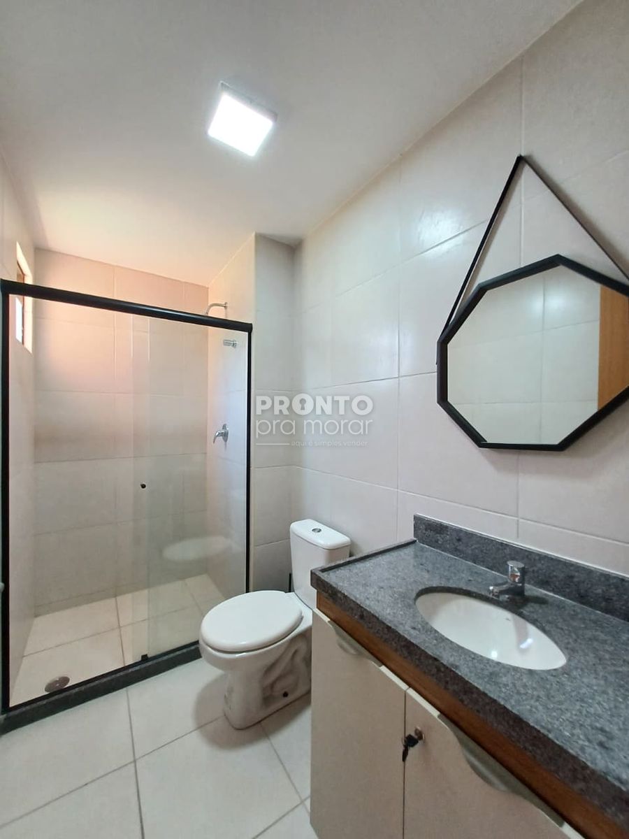 O imóvel possui varanda, sala para dois ambientes, dois quartos sendo um suíte, cozinha funcional, área de serviço e uma garagem coberta.