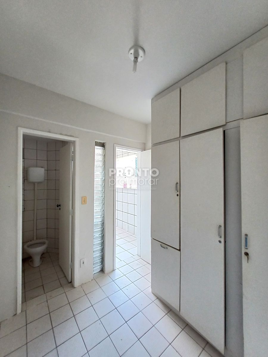 Imóvel possui varanda, sala para dois ambientes, três quartos sendo um suíte, banheiro social, cozinha ampla, área de serviço, quarto e banheiro de serviço e uma vaga de garagem coberta.
