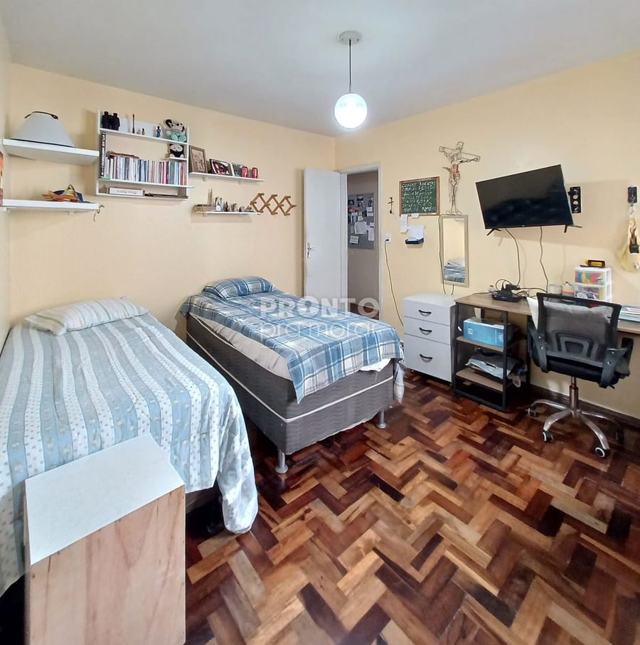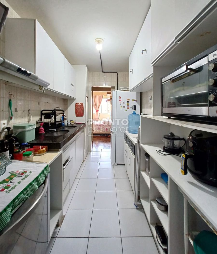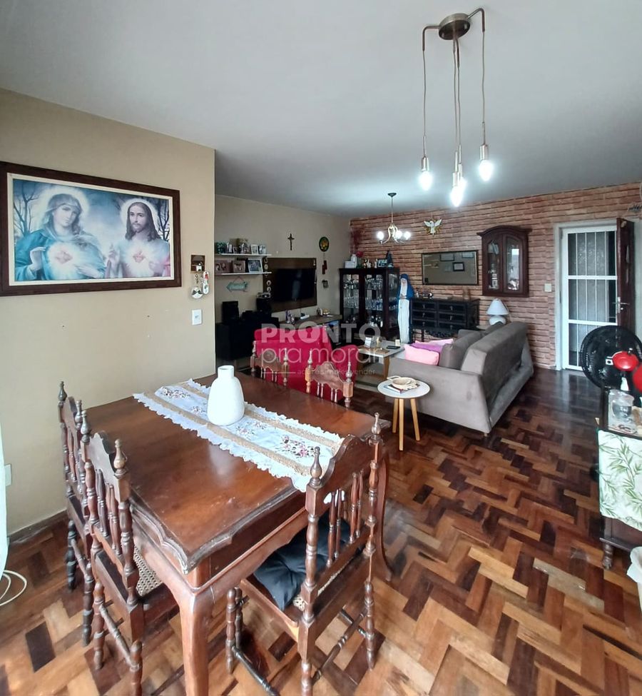 O imóvel conta com três quartos sendo uma suíte, banheiro social, sala ampla para dois ambientes, cozinha completa, área de serviço, dependência completa e uma vaga de garagem coberta.