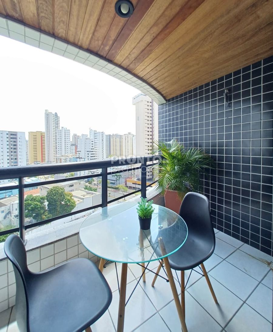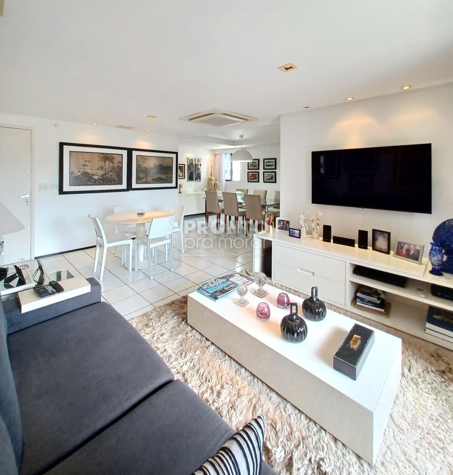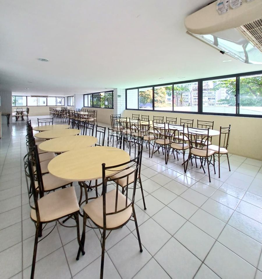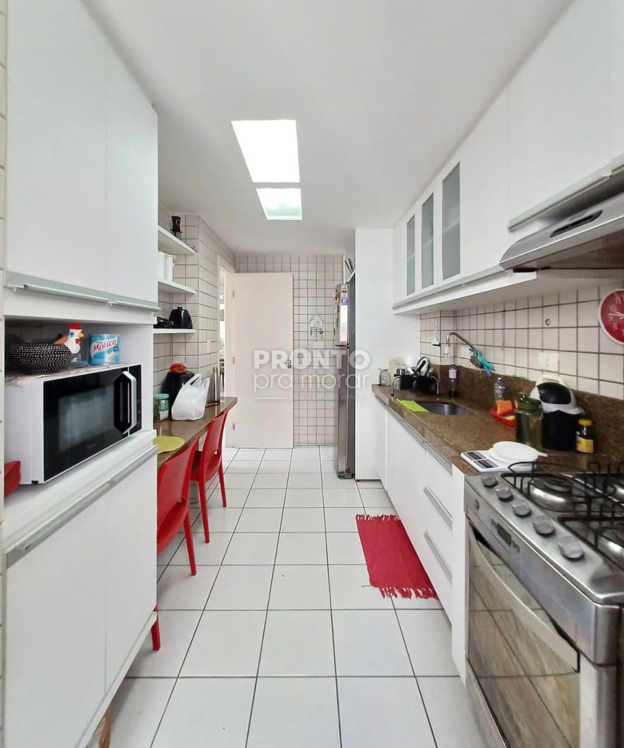 Amplo imóvel com 110 m², varanda, sala para três ambientes, três quartos (sendo duas suítes), banheiro social, cozinha, área de serviço e dependência completa.