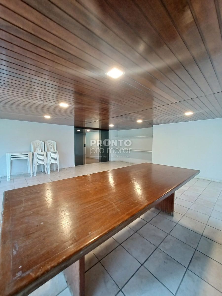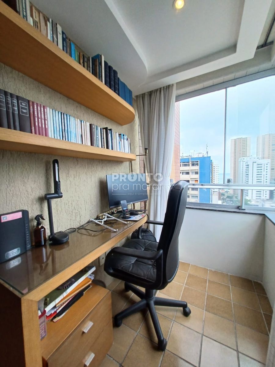 O imóvel dispõe de varanda, sala para três ambientes, três quartos sendo um suíte, banheiro social, cozinha, quarto e banheiro de serviço, área de serviço e duas vagas de garagem cobertas.