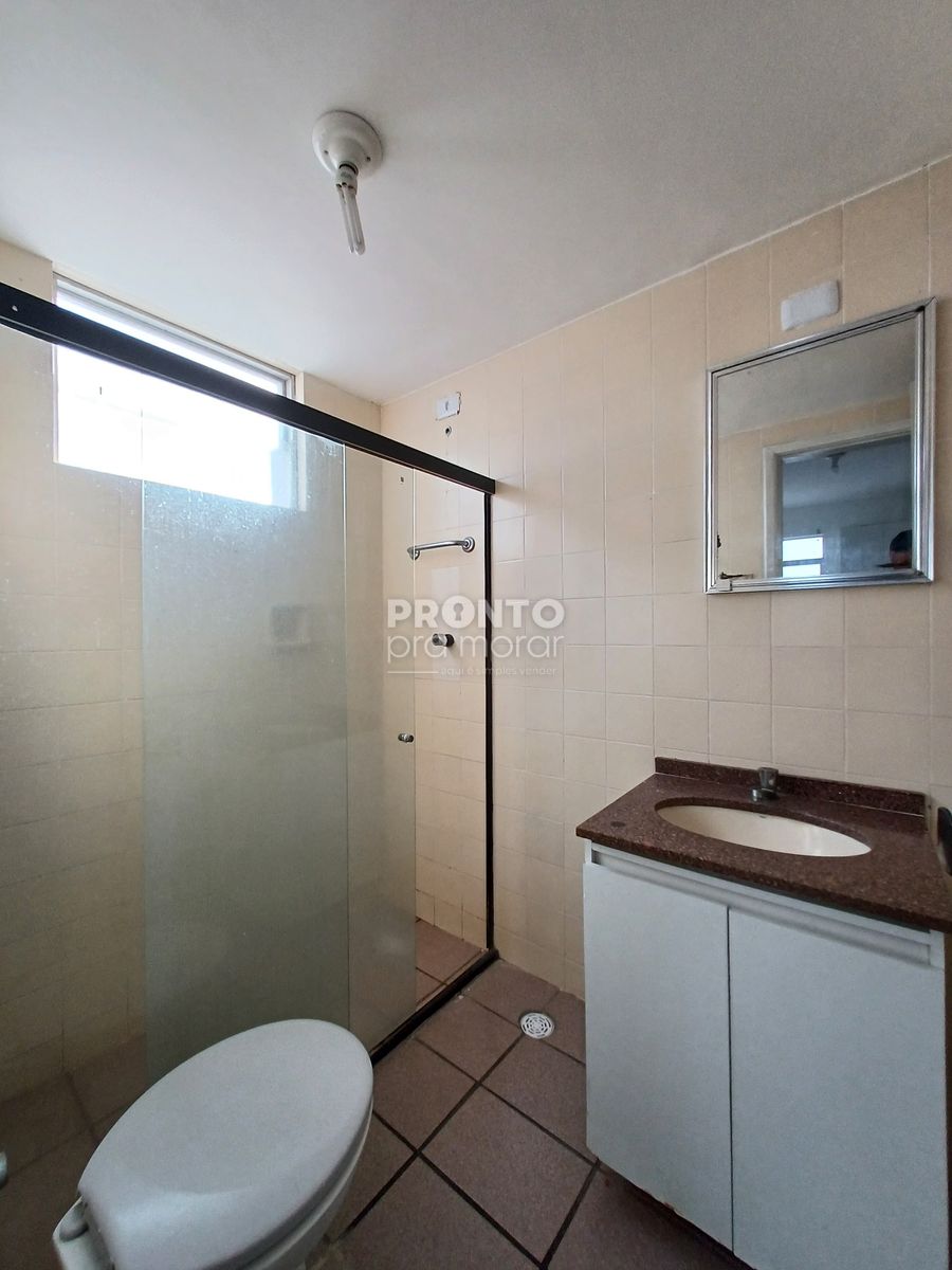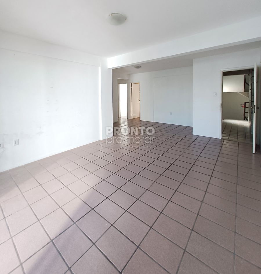 O imóvel possui 100m², varanda ampla, sala para dois ambientes, wc social, três quartos, uma suíte, cozinha, área de serviço, wc de serviço e duas vagas de garagem.