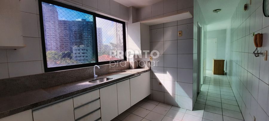 O imóvel possui 117m², varanda, sala para dois ambientes, wc social, três quartos sendo um suíte, cozinha, área de serviço, wc de serviço, quarto de serviço, e duas vagas de garagem.