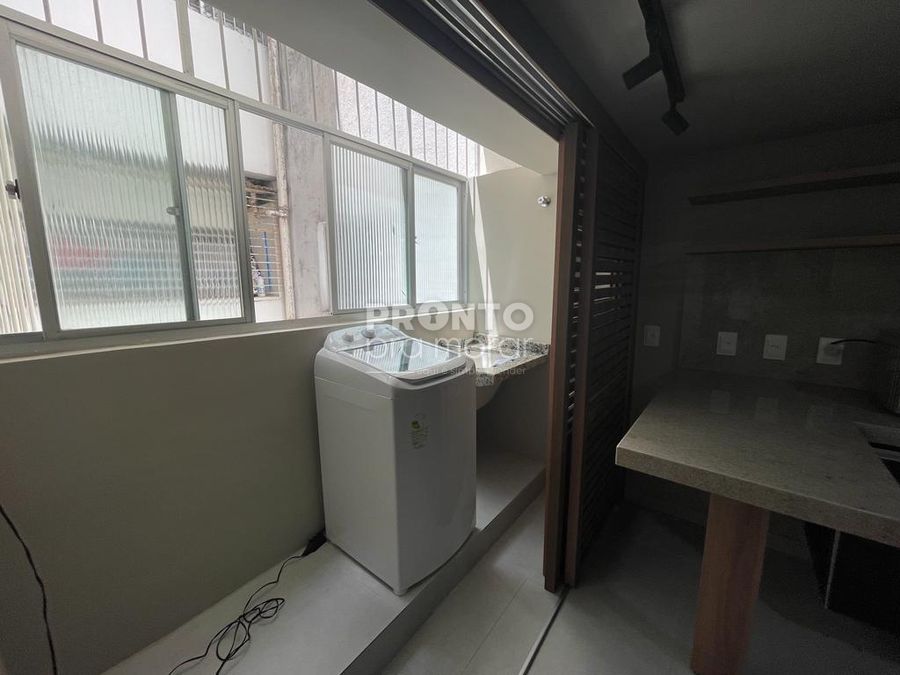 Edifício com salão de festa, área de convivência, elevador e portaria 24h.