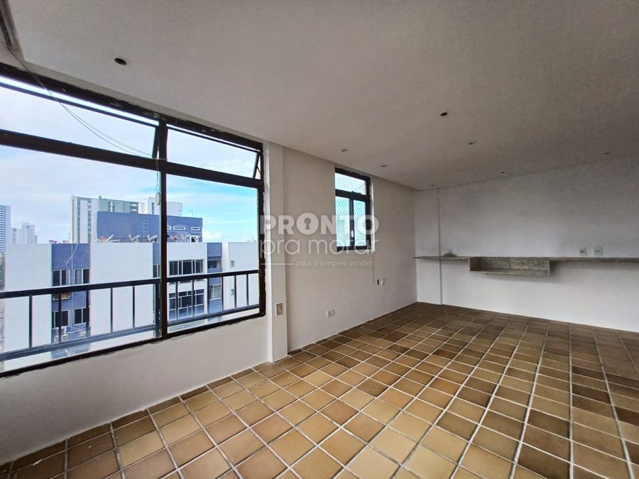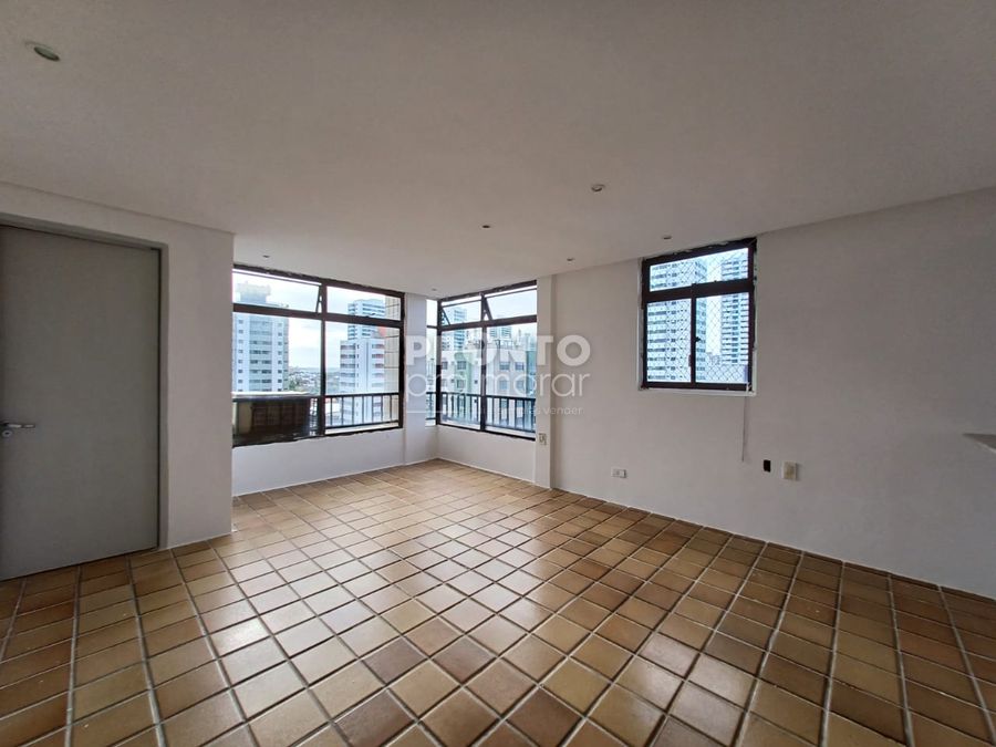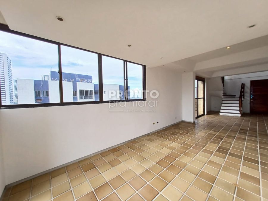 O imóvel é duplex e possui 161,64m², o pavimento inferior dispõe de sala para dois ambientes, duas varandas, wc social, um quarto social, cozinha, área de serviço, wc de serviço, quarto de serviço e dispensa.