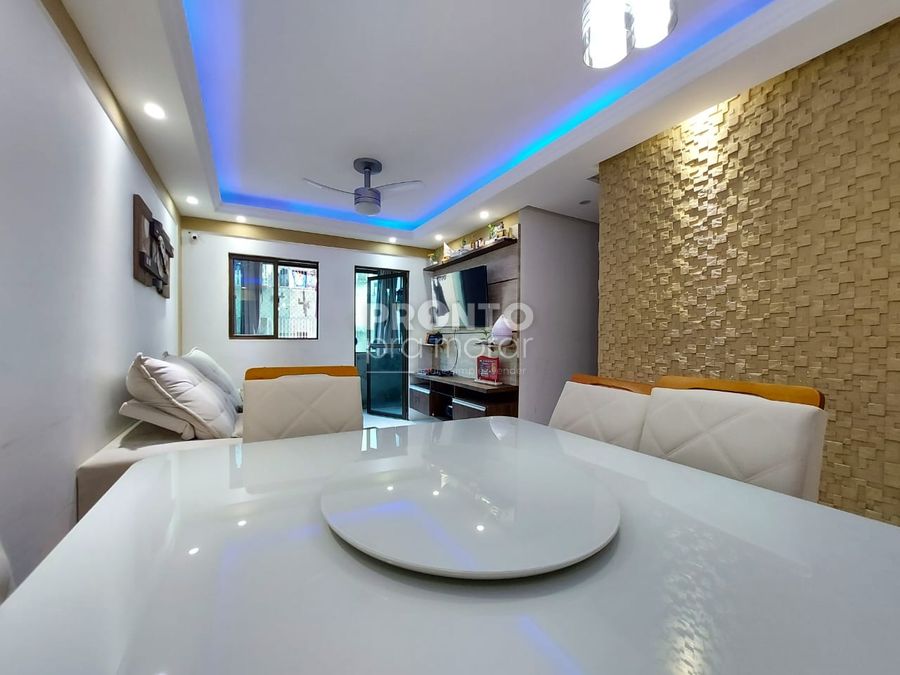 O imóvel possui varanda, sala para dois ambientes, três quartos sendo um suíte, wc social, cozinha, área de serviço e uma vaga de garagem.