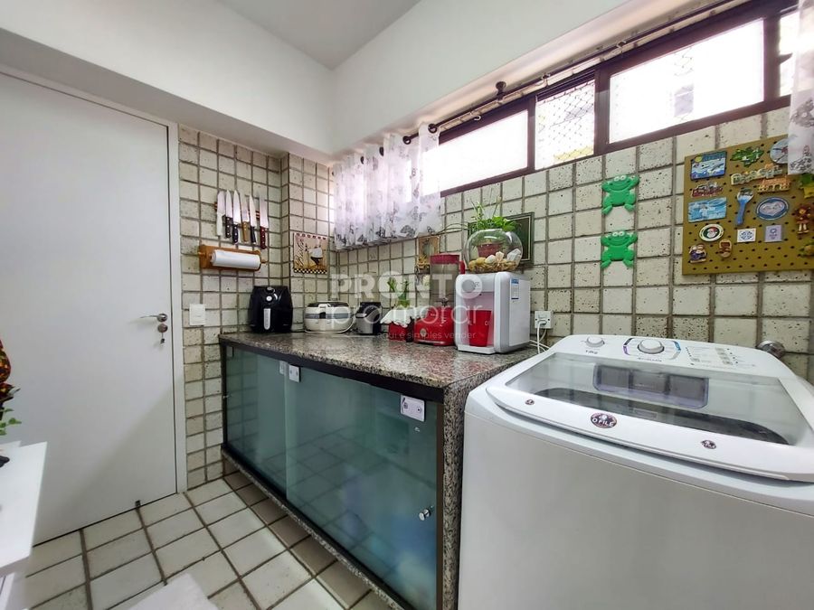 O imóvel possui 165m² de área construída, varanda, sala para 03 ambientes, 03 suítes sendo 01 máster com closet e 02 canadenses, cozinha, área de serviço, quarto de serviço, 02 vagas de garagem cobertas.