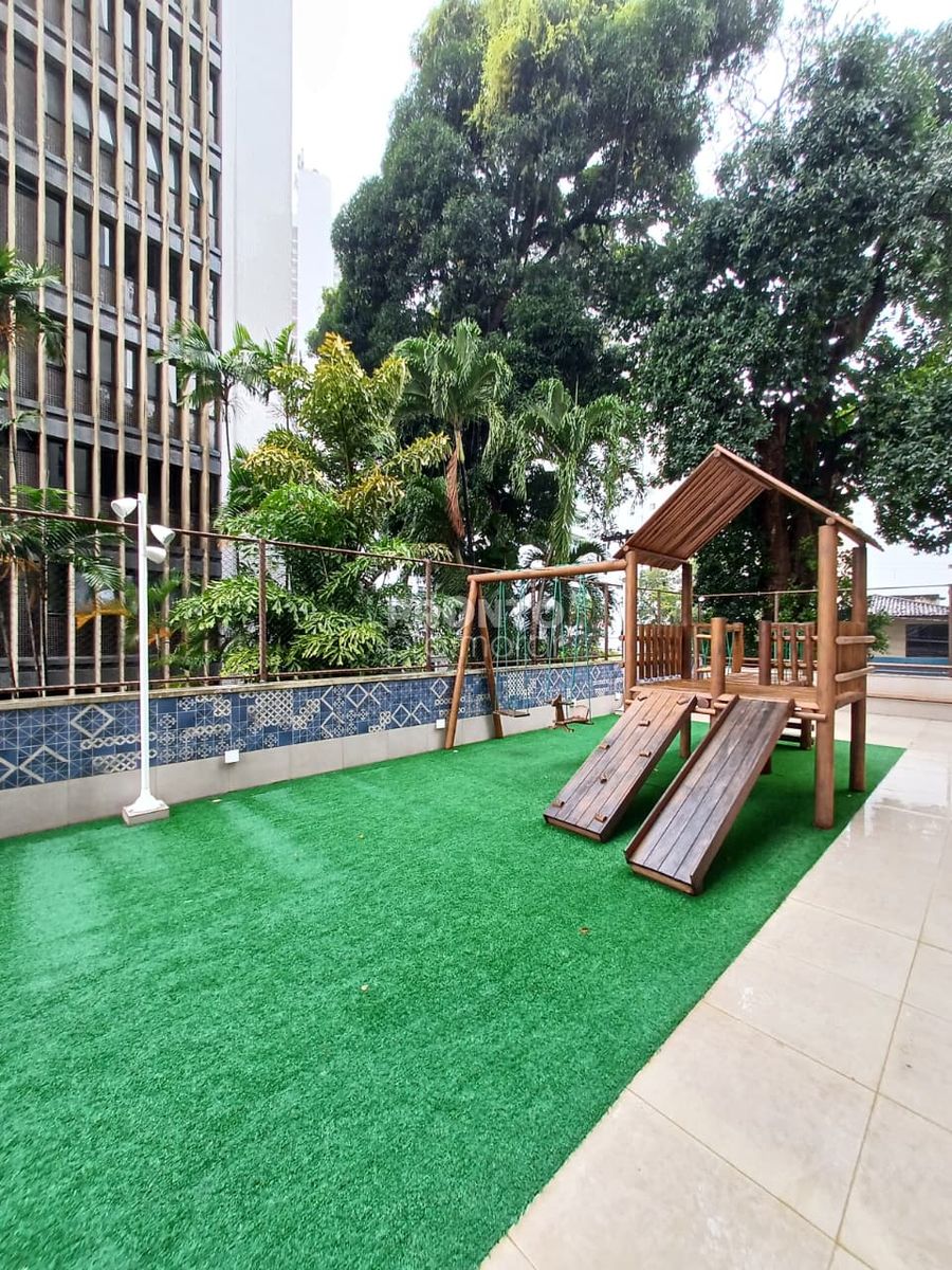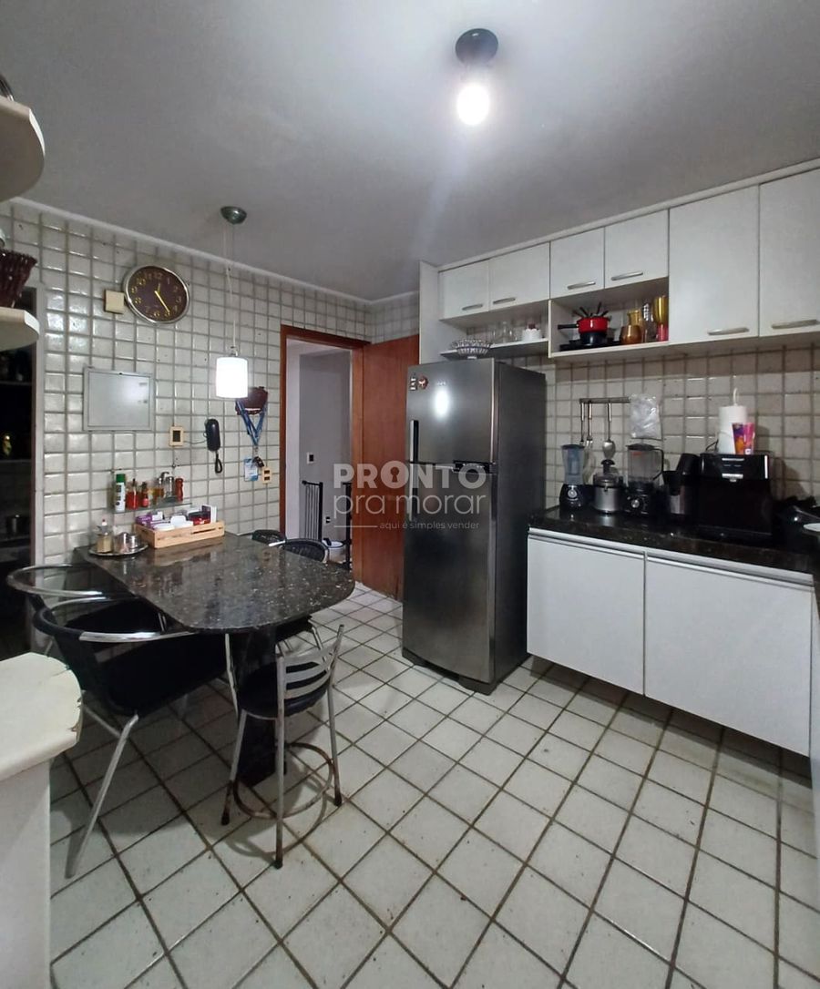 Amplo apartamento com 180m² de área privativa, projetado para oferecer conforto e praticidade. O imóvel dispõe de varanda, sala para três ambientes, três quartos sendo dois deles suítes, banheiro social, cozinha ampla, dependência completa de serviço e duas vagas de garagem cobertas.