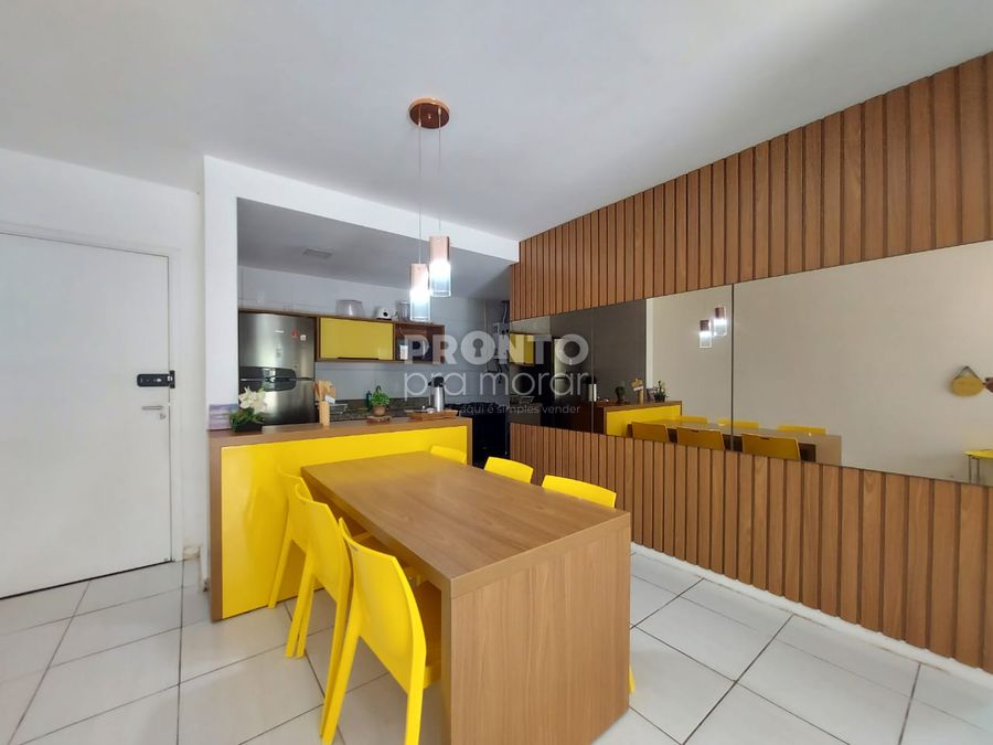 O imóvel possui 93,55m² de área útil, varanda, sala para 2 ambientes, 3 quartos sendo 1 suíte, 1 banheiro social, cozinha, área de serviço e 1 vaga de garagem.