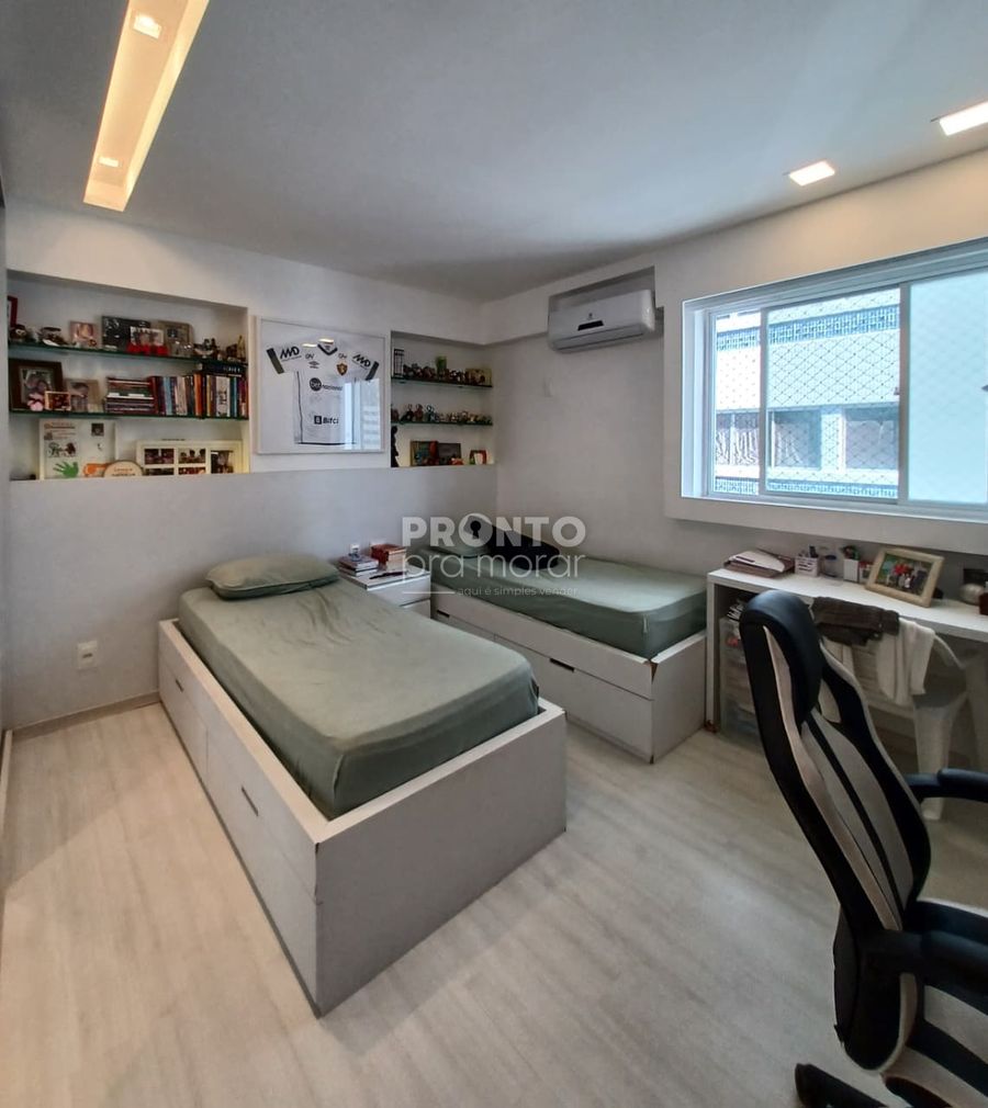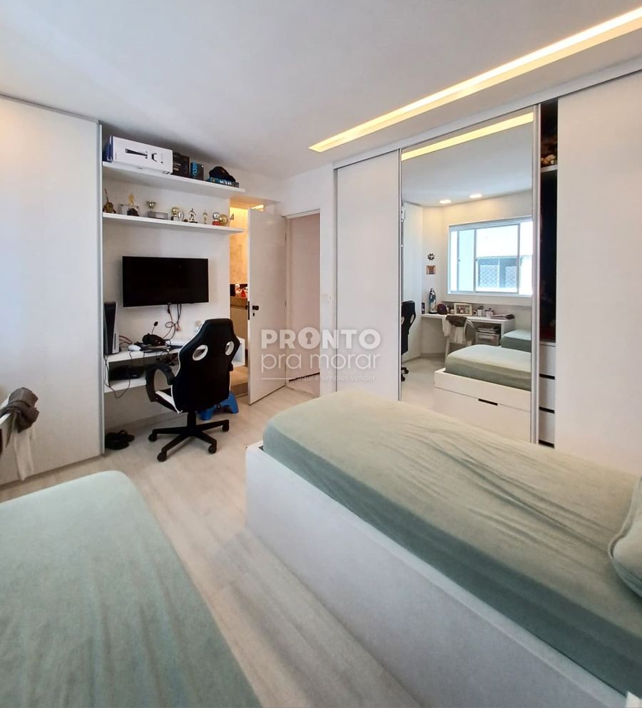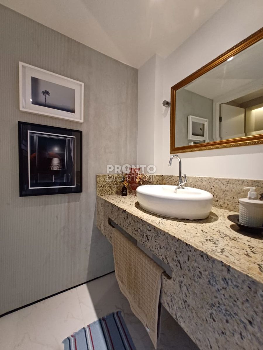 O imóvel conta com sala para três ambientes integrada à varanda, três suítes (sendo uma com closet), lavabo, cozinha, despensa, área de serviço, quarto e banheiro de apoio. Dispõe ainda de duas vagas de garagem cobertas.