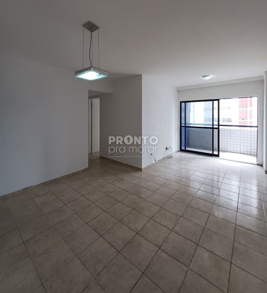 O apartamento possui: varanda, sala para dois ambientes, três quartos sendo um suíte, cozinha ampla, despensa, um banheiro social, área de serviço, banheiro de serviço, dormitório de serviço e uma vaga de garagem.