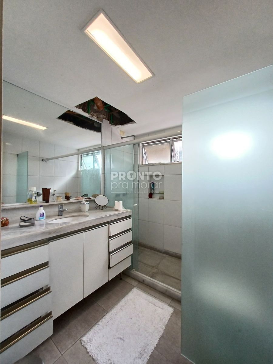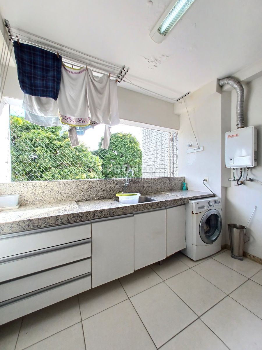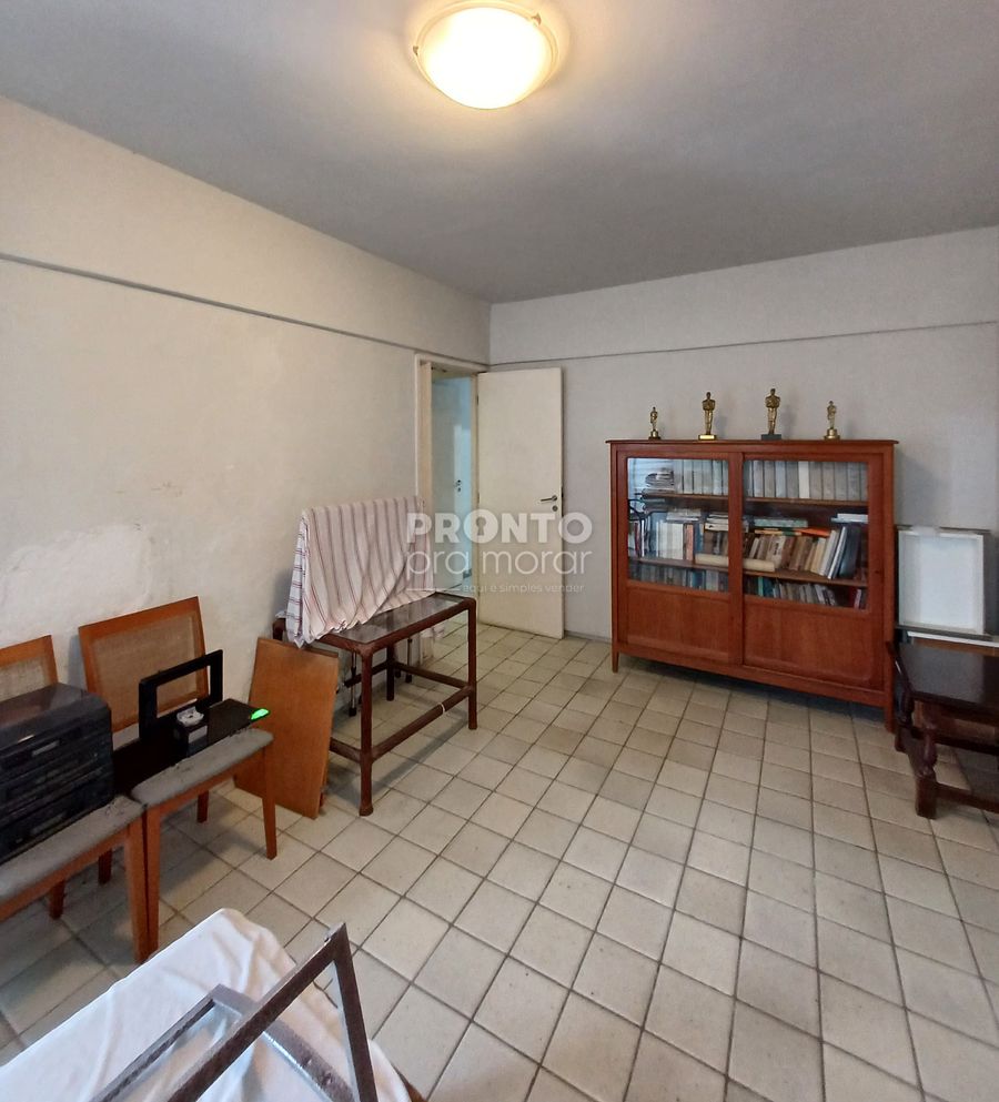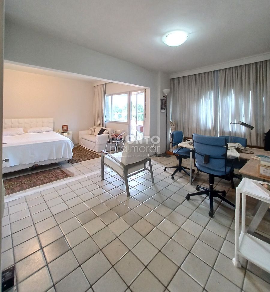 O imóvel possui varanda, sala ampla para três ambientes, três quartos sendo dois suítes e um com varanda e closet, banheiro social e lavabo, cozinha, dois quartos e um banheiro de serviço, área de serviço e duas vagas de garagem cobertas.