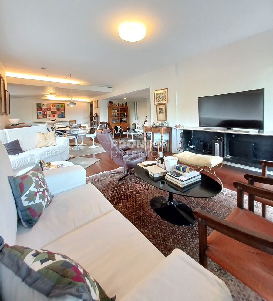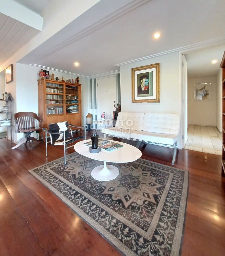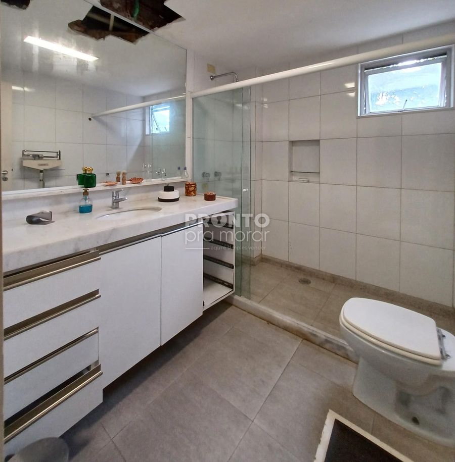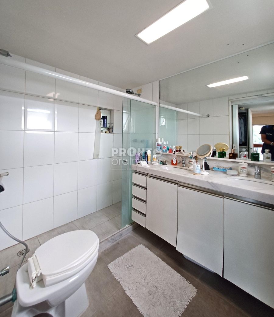 O imóvel possui varanda, sala ampla para três ambientes, três quartos sendo dois suítes e um com varanda e closet, banheiro social e lavabo, cozinha, dois quartos e um banheiro de serviço, área de serviço e duas vagas de garagem cobertas.