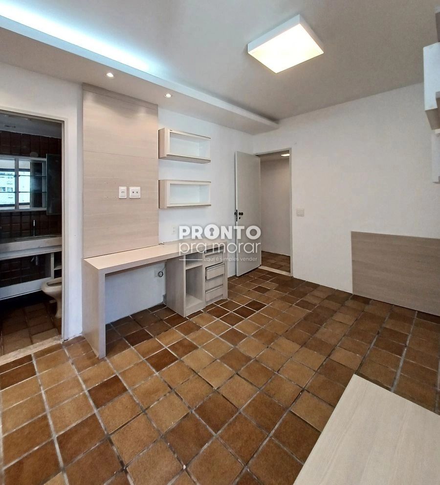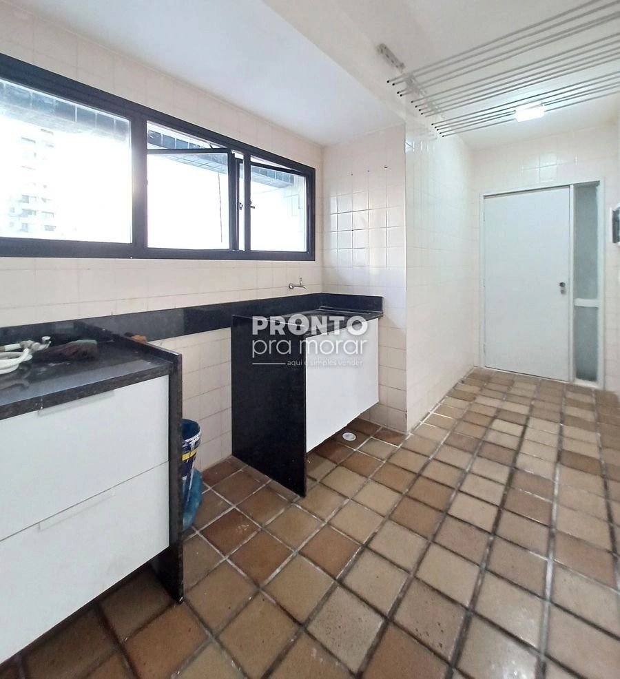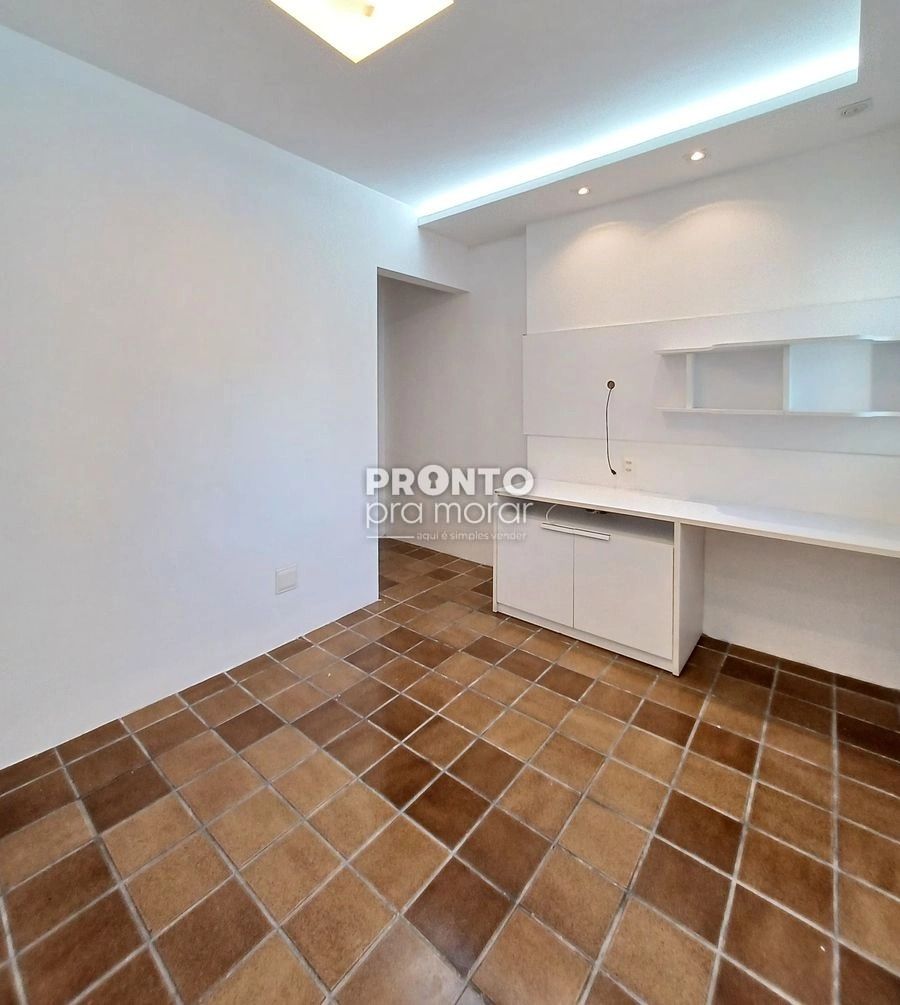 Imóvel dispõe de varanda, sala para dois ambientes, quatro quartos sendo uma suíte, banheiro social, cozinha, área de serviço, dependência completa de empregada e duas vagas de garagens.