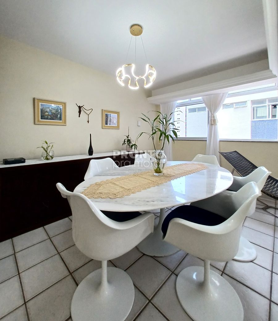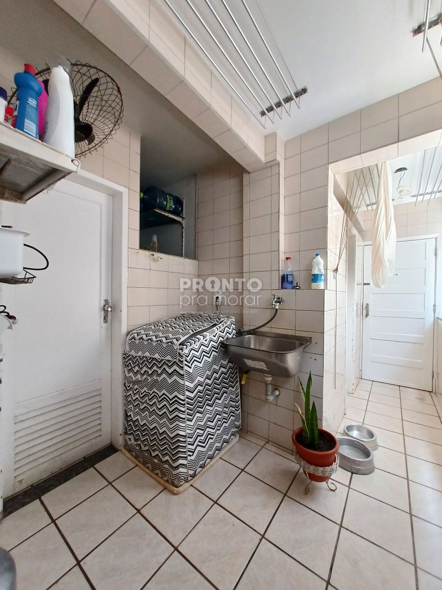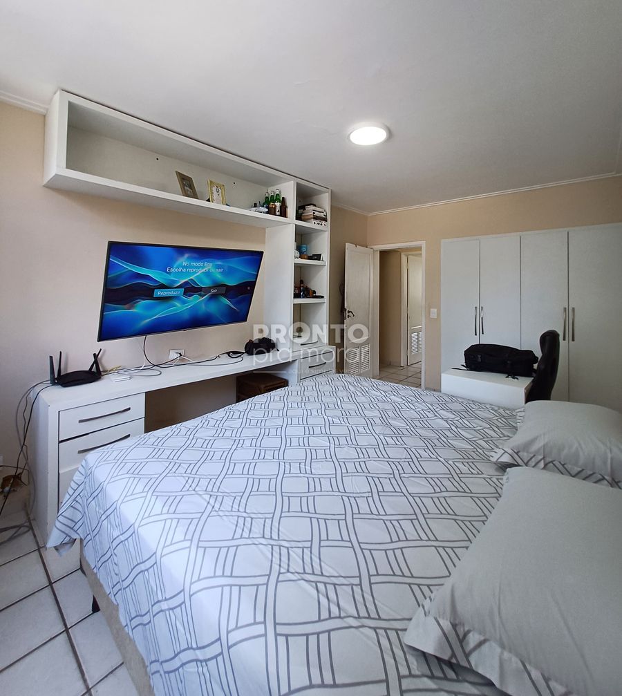O imóvel possui 137,80m², sala para dois ambientes, quatro quartos sendo um suíte, banheiro social, cozinha, armários, área de serviço, quarto e banheiro de serviço e uma vaga de garagem coberta.
