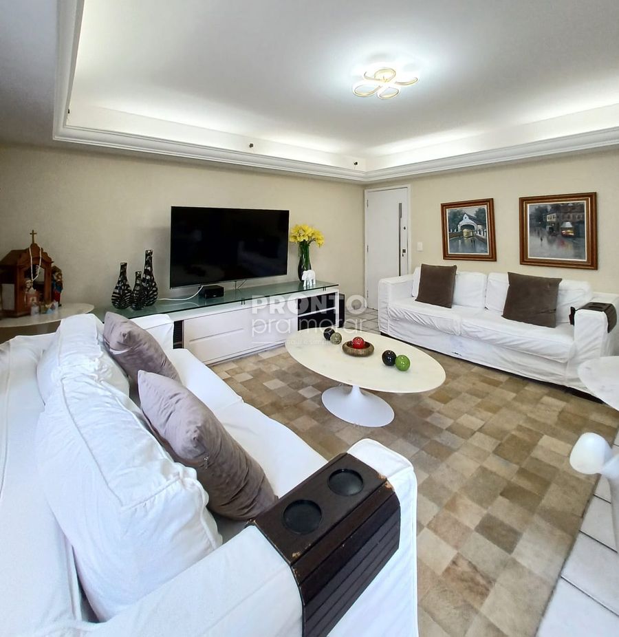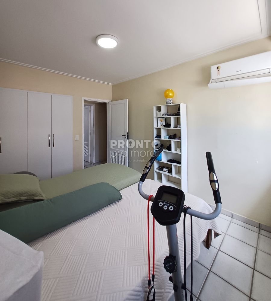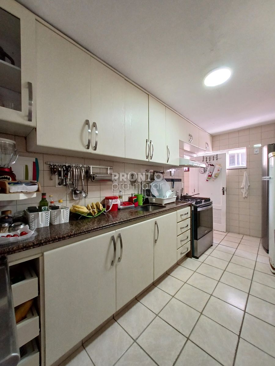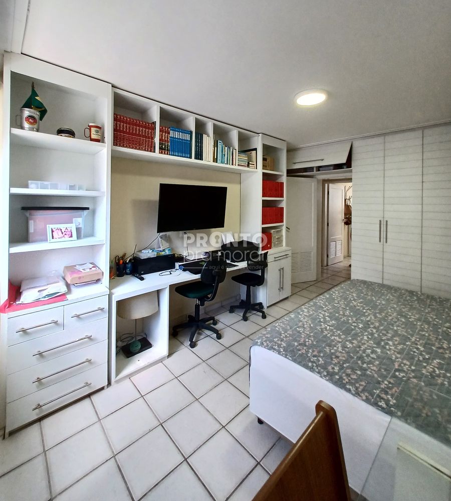 O imóvel possui 137,80m², sala para dois ambientes, quatro quartos sendo um suíte, banheiro social, cozinha, armários, área de serviço, quarto e banheiro de serviço e uma vaga de garagem coberta.