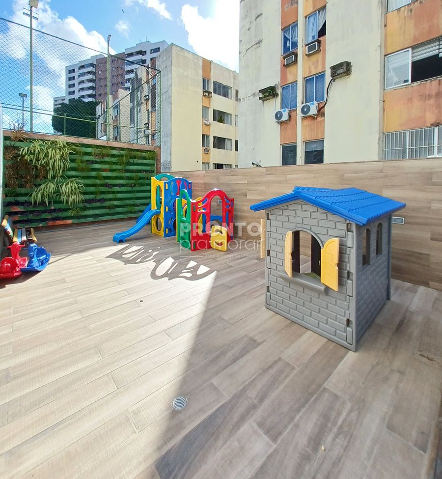 O condomínio possui playground, portaria 24h, elevador, piscina, portão eletrônico, salão de festas, quadra poliesportiva.