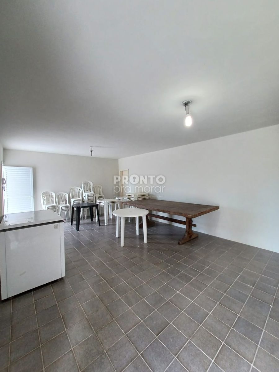 Condomínio com salão de festas, área de convivência e parquinho infantil.