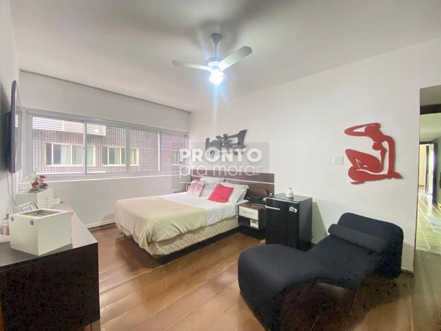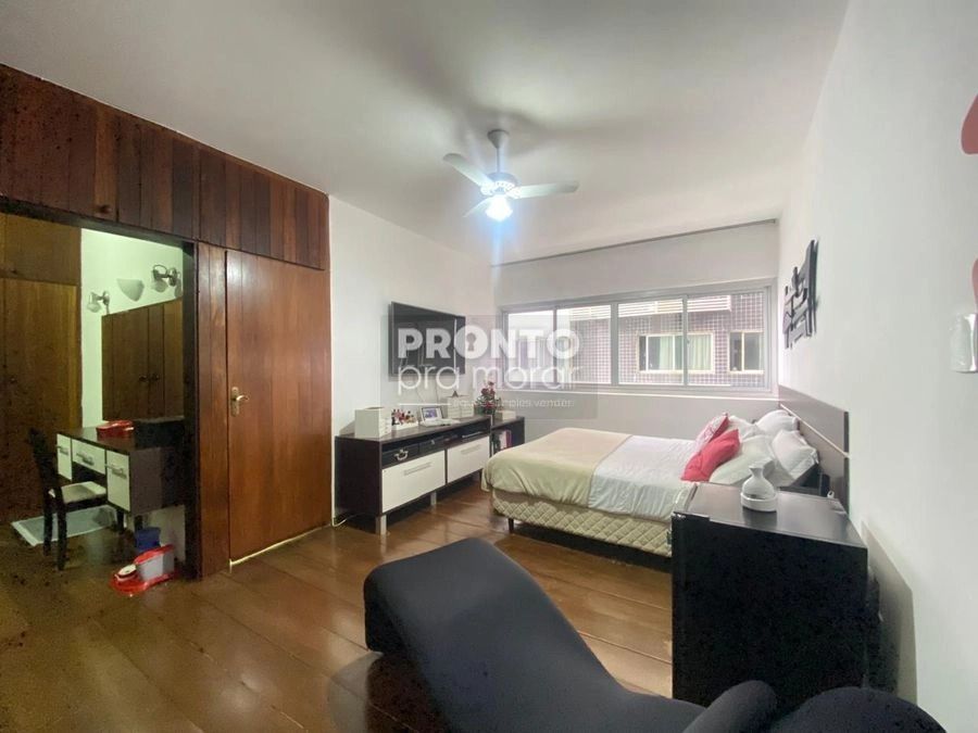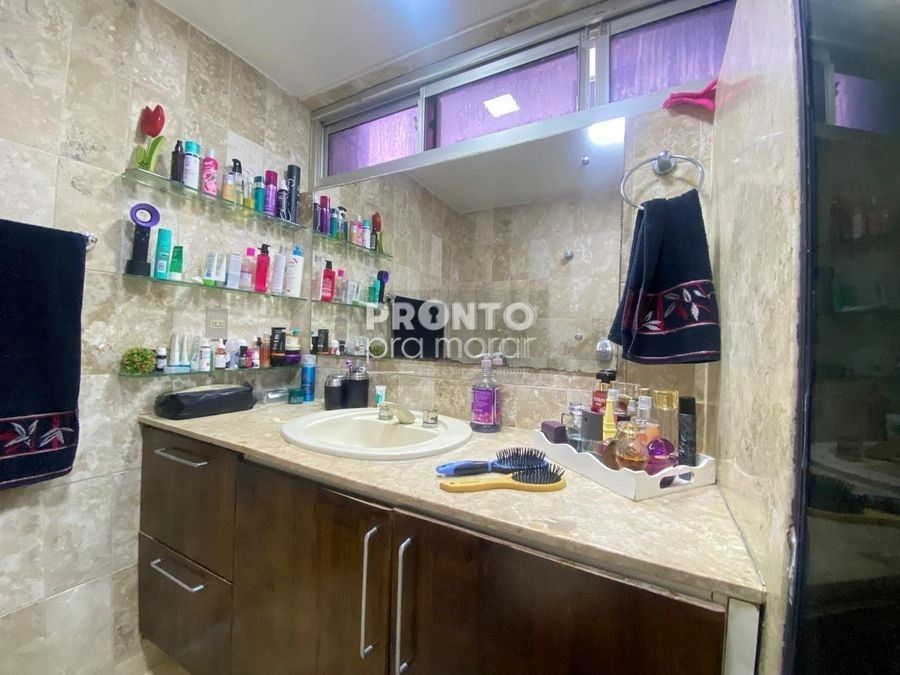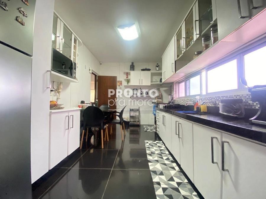 O imóvel possui varanda ampla, sala para três ambientes, quatro quartos, um banheiro social, lavabo, cozinha, quarto e banheiro de serviço, área de serviço e duas vagas de garagem cobertas.