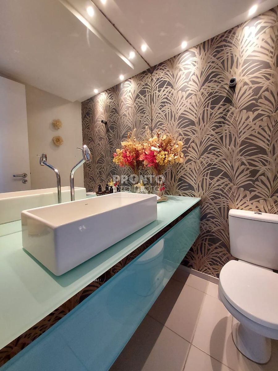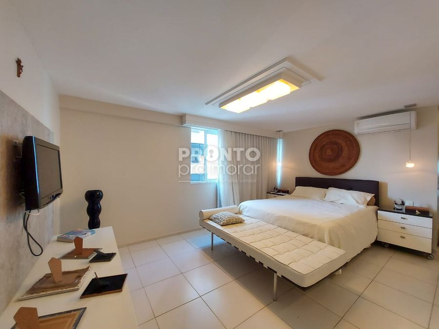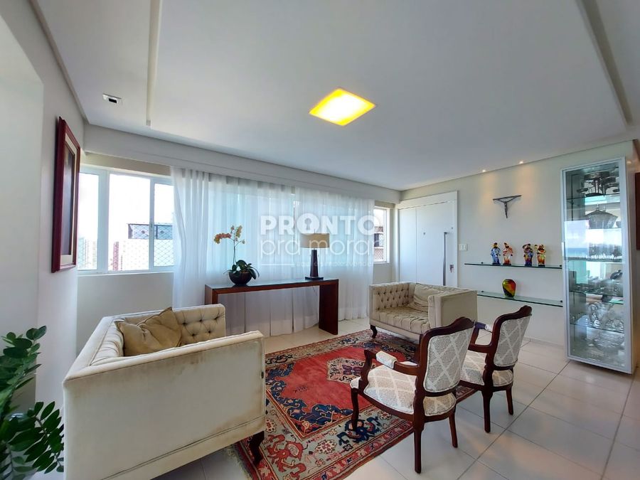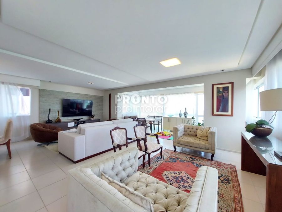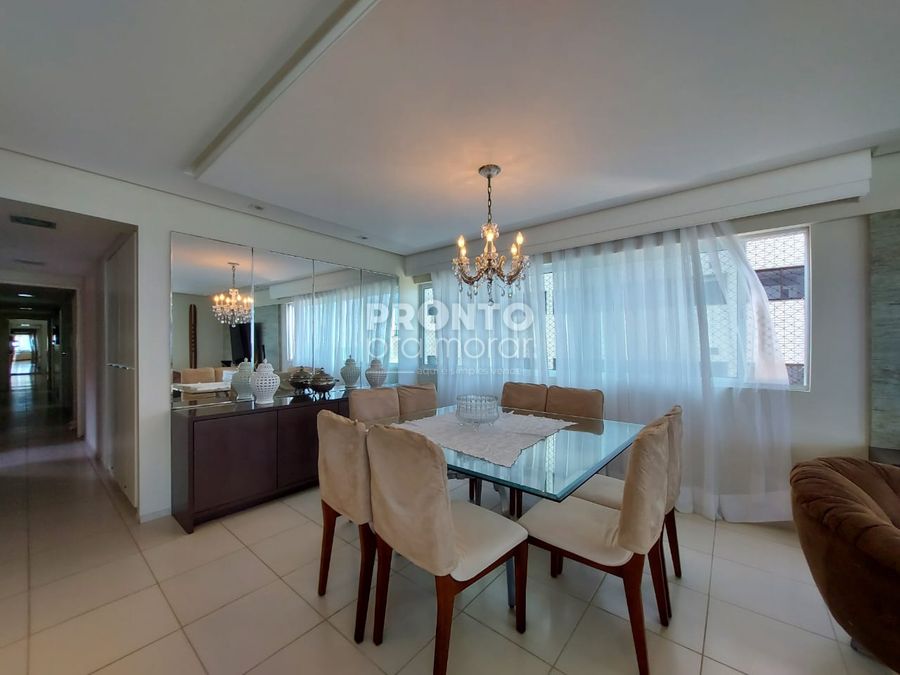 O imóvel possui varanda, sala para 4 ambientes, 4 suítes, 1 wc social, cozinha, quarto e banheiro de serviço, área de serviço e 3 vagas de garagem cobertas.