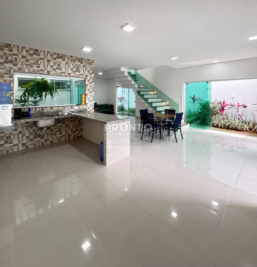 Com 198m² de área privativa, esta casa oferece conforto, sofisticação e praticidade no dia a dia. Possui ampla sala para dois ambientes, quatro quartos – incluindo uma suíte master com closet e outra suíte com terraço privativo –, além de banheiro social, lavabo, cozinha americana com ilha, área de serviço e quintal espaçoso.