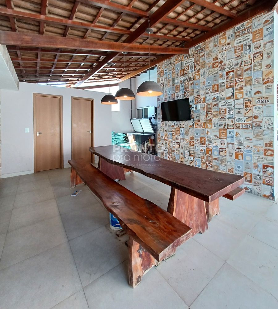 O empreendimento dispõe de salão de festas, salão de jogos, campo de futebol, quadra de tênis, piscina adulto e infantil, playground, churrasqueira, câmeras de segurança, cerca elétrica, portaria 24h